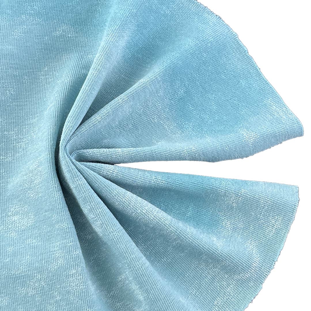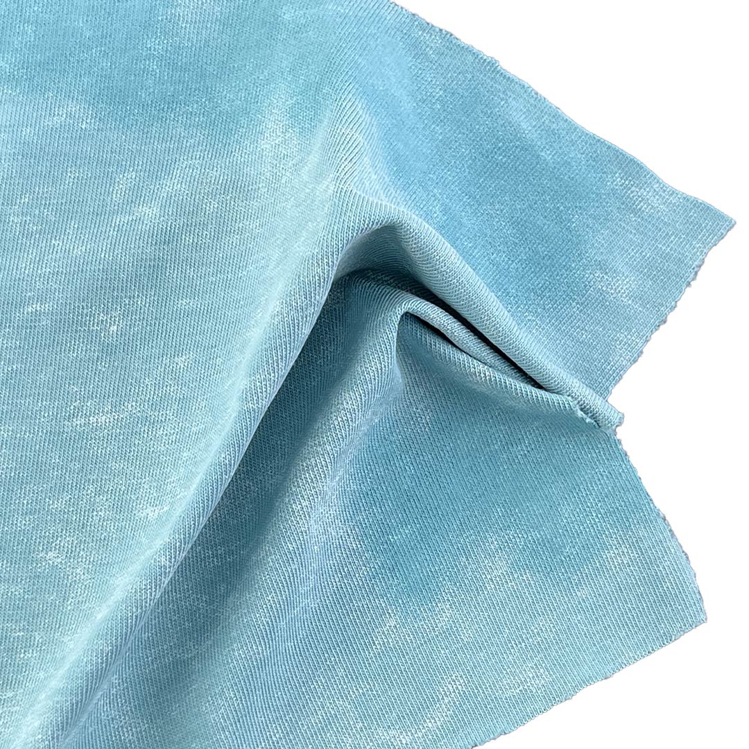 The high cotton content ensures exceptional breathability and softness, while the 5% Spandex provides subtle stretch and recovery for a comfortable, flexible fit. Weighing only 120gsm, this featherlight fabric offers a relaxed drape and airy feel, making it ideal for T-shirts, streetwear essentials, and long sleeve shirts designed for warm-weather styling or layered looks. The acid wash process results in nuanced tonal variations and a softened hand feel, ensuring no two pieces are identical and adding an artisanal edge to your designs. The textured surface not only enhances visual depth but also contributes to a lived-in, authentic aesthetic.