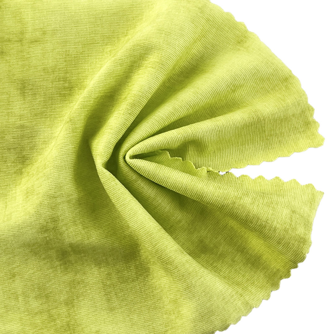 The fabric's smooth hand feel and subtle stretch ensure comfortable wear, while the distressed finish adds a contemporary edge to casual designs. Easy to care for and machine washable, this fabric maintains its textured appearance and vibrant colors over time. Whether designing statement long sleeve shirts for layered outfits or graphic T-shirts for street-style looks, this Acid Wash Single Jersey Fabric empowers you to create garments that stand out with authentic, lived-in character and modern appeal.