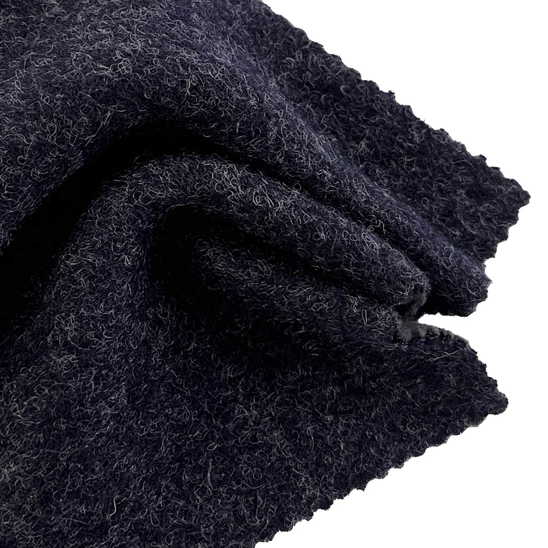 The back side consists of 20% Polyester and 80% Viscose, providing a smooth, moisture-wicking interior that enhances comfort against the skin. This Bonded Boiled Wool Fabric integrates bonding technology with the traditional boiled wool process on the front layer, resulting in a fabric that combines structural integrity with flexible movement. Weighing 240gsm, this Medium-weight Boiled Wool Fabric delivers balanced warmth and breathability, ideal for transitional and cool-weather apparel.