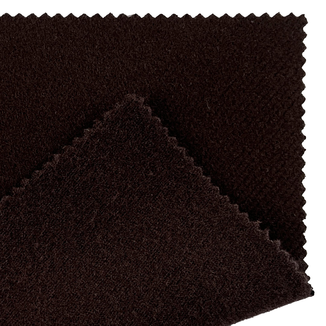 Our 250gsm Bonded Boiled Wool Fabric features a sophisticated two-layer construction with distinct fiber compositions on each side, making it a versatile and performance-driven material. The front side is crafted from a blend of 1.5% Wool, 1.5% Silk, and 97% Polyester, offering a luxuriously soft hand feel, subtle natural warmth from wool, a delicate luster from silk, and exceptional durability and shape retention from polyester.