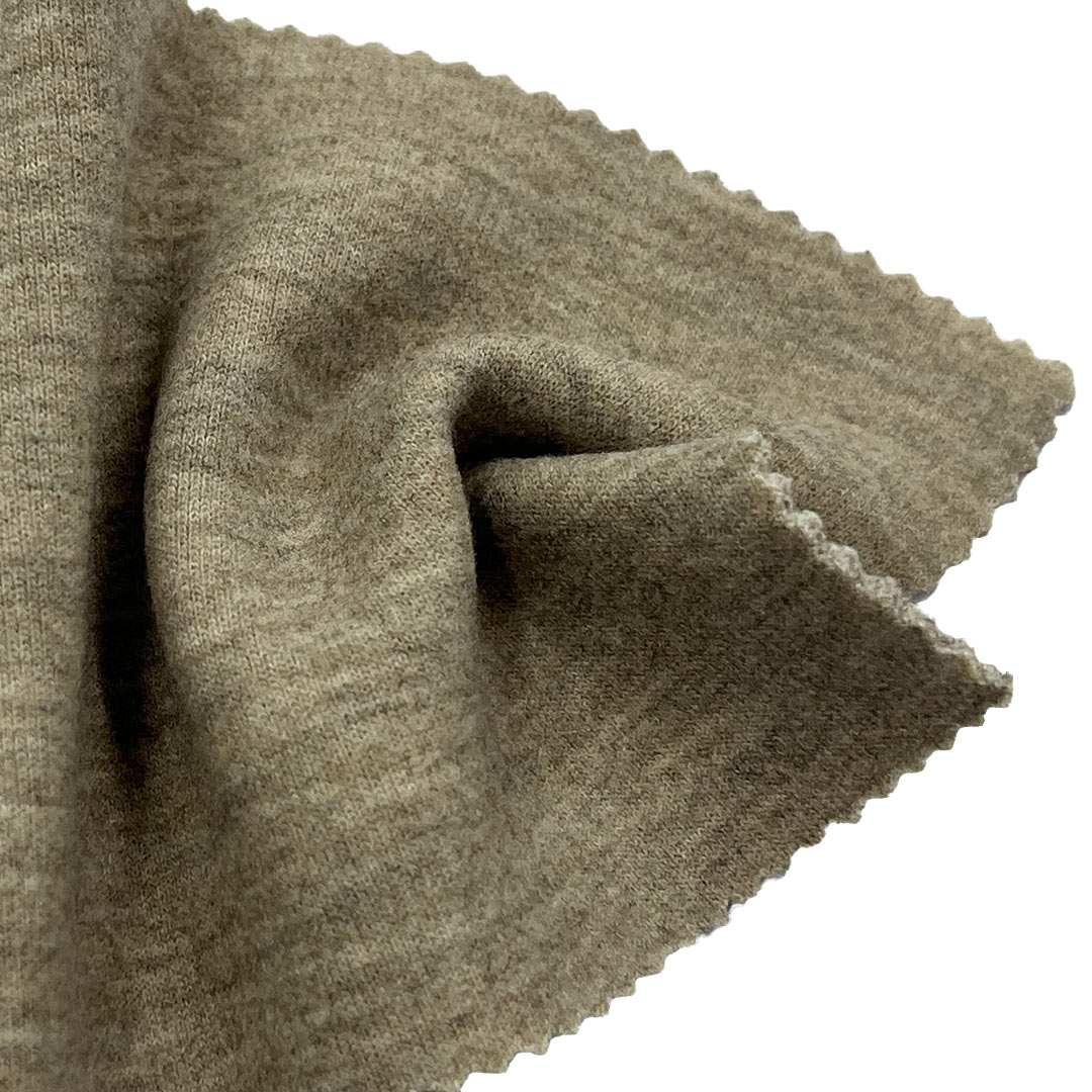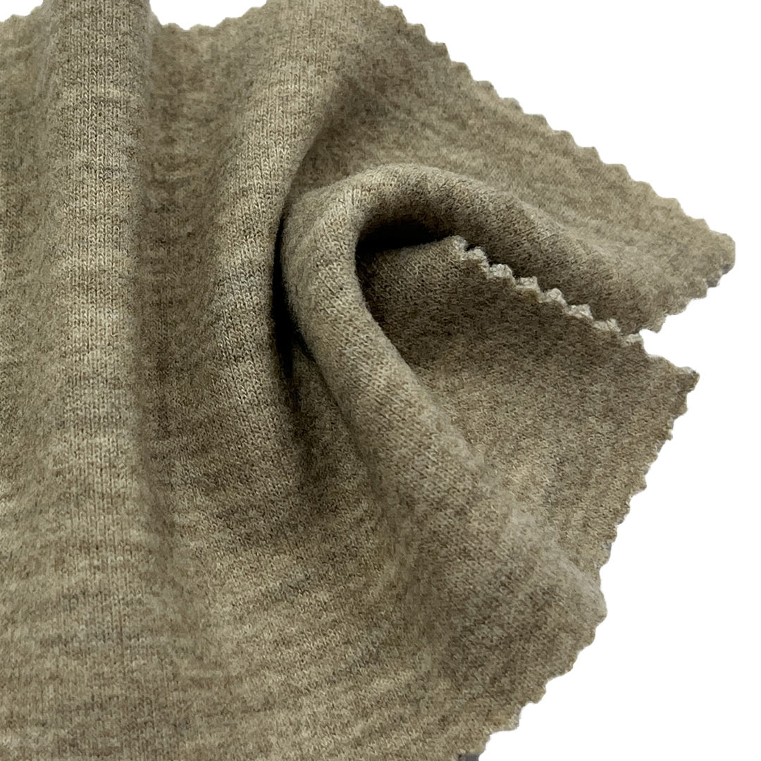 Experience exceptional warmth and comfort with our 380gsm Double Knit Brushed Fabric, expertly crafted from 42.2% Modal, 51.9% Polyester, and 5.9% Spandex. This premium heavyweight fabric features a double-sided knit structure that provides excellent durability and shape retention, combined with a brushed interior that creates a luxuriously soft hand feel against the skin.