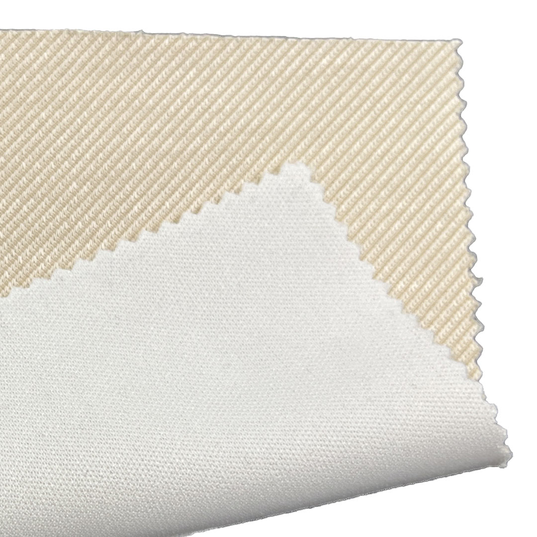 Engineered for premium performance and structured comfort, our 450gsm Twill Bonded Fabric combines a face layer of 60% Modal, 35% Polyester, and 5% Spandex with a back layer of 100% Polyester. This innovative dual-layer fabric features a diagonal twill weave on the face, providing a textured surface and a distinctly crisp hand feel, while the bonded polyester back adds exceptional stability, wind resistance, and thermal insulation.