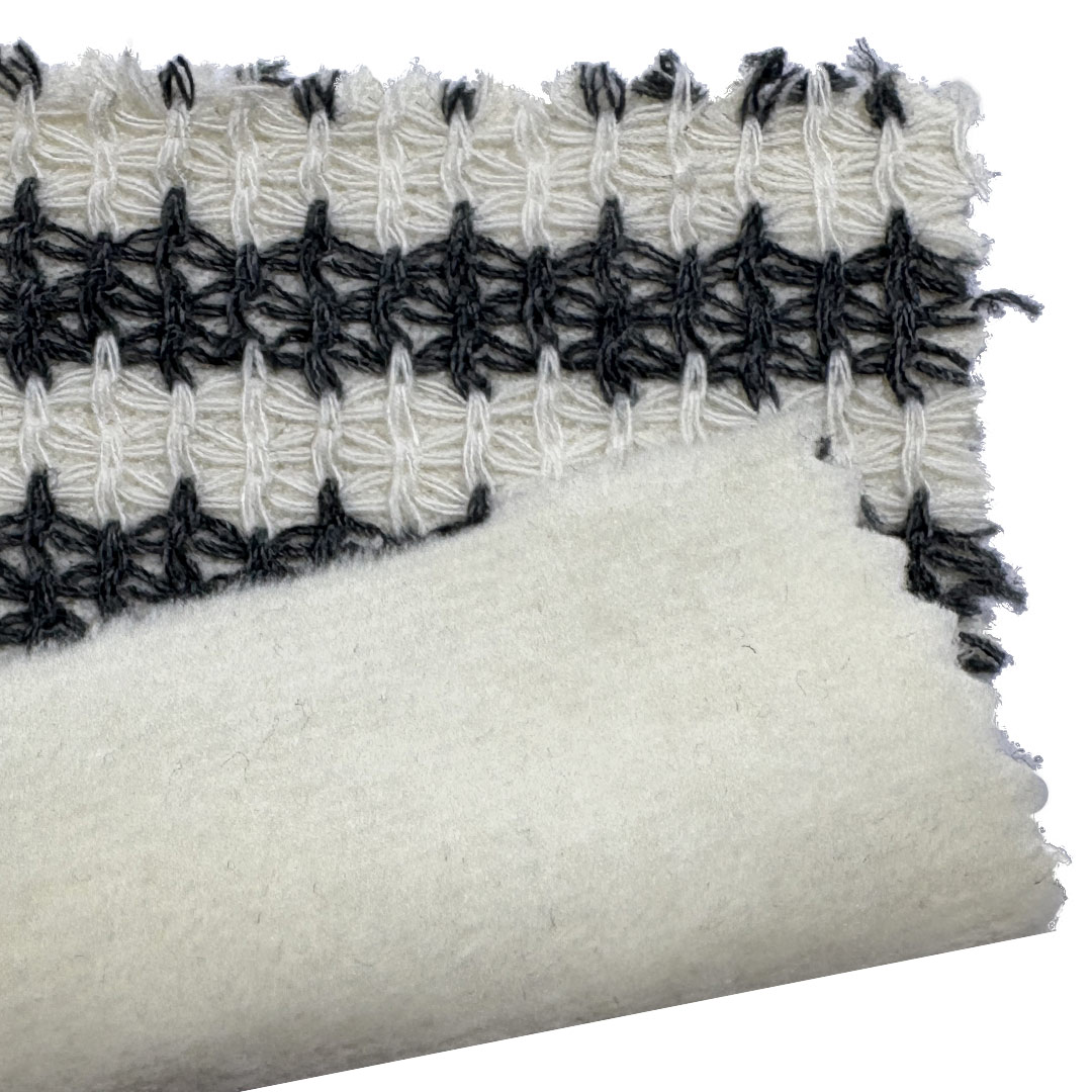 Weighing 460gsm (16.2oz), this technical jacquard plated fabric features a dual-layer construction designed to deliver soft hand feel for hoodies and sweatshirts. The face layer combines 65% cotton and 35% polyester for natural breathability, comfort, and durability, while the back layer uses 94.5% polyester and 5.5% spandex for enhanced stretch, recovery, and structural support.