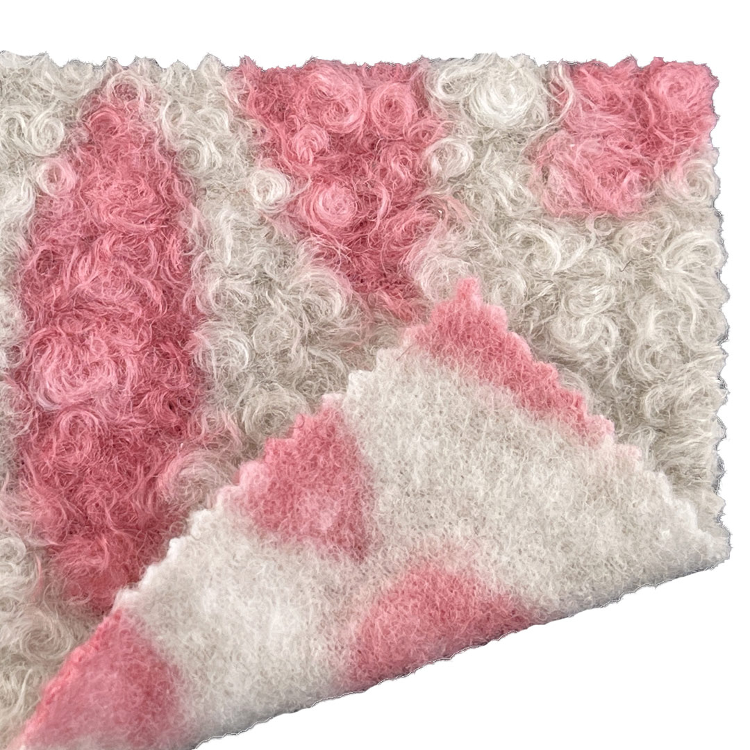 Discover the perfect blend of style and substance with our 630gsm reversible boucle fabric, expertly crafted from 100% Polyester. This heavyweight fabric features the intricate looped texture characteristic of boucle, combined with an exceptionally plush, soft hand feel that creates a luxurious tactile experience. The all-polyester composition ensures outstanding durability, color retention, and resistance to wrinkles, shrinking, and pilling, making it ideal for high-quality outerwear that withstands frequent wear.