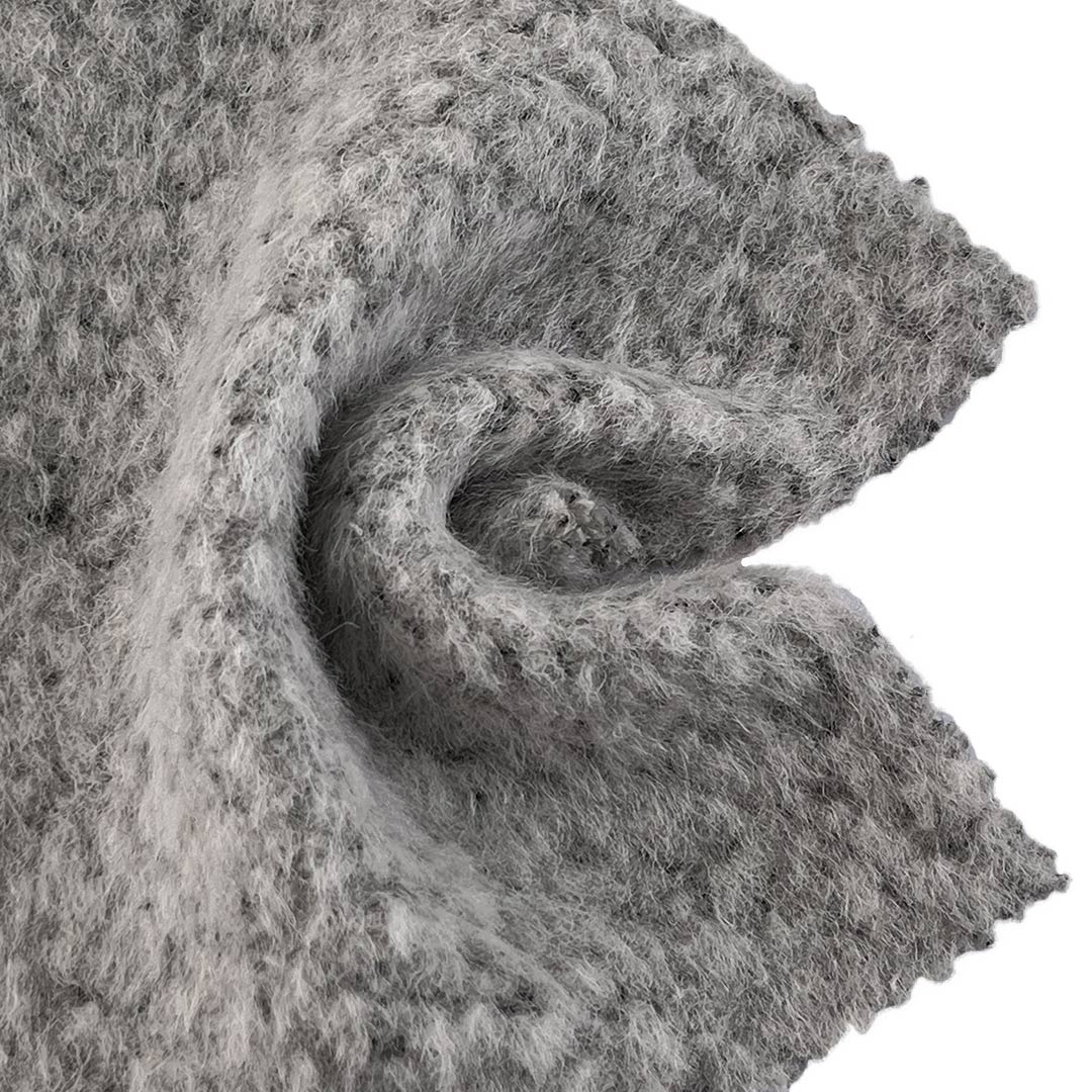 Discover the perfect balance of texture, warmth, and durability with our 700gsm Boucle Fabric, expertly crafted from 50% Wool and 50% Polyester. This looped pile fabric features a distinctive looped, curly surface that creates a rich tactile experience and visual depth, making it ideal for artistic tapestries, cozy zip-up hoodies, and luxurious pajamas.