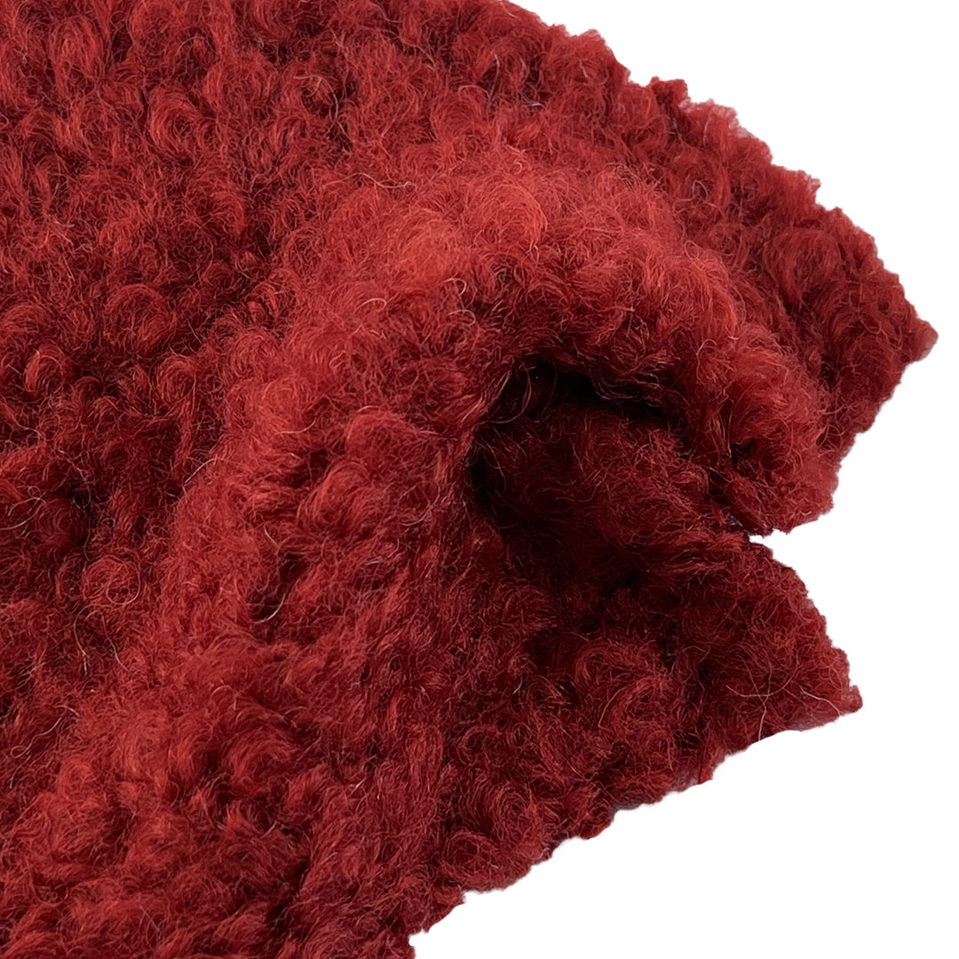 Discover the extraordinary texture and luxurious warmth of our 800gsm lambswool loop fabric, meticulously crafted from 70% Wool and 30% Polyester. This ultra-heavyweight fabric combines the intricate looped texture characteristic of boucle with an exceptionally plush, soft hand feel, creating a material that is both visually striking and delightfully tactile. Wool provides natural thermal insulation, breathability, and moisture management, making it ideal for cold-weather applications, while polyester enhances durability, shape stability, and resistance to wear.