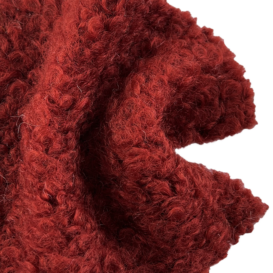 Weighing 800gsm, this fabric delivers unparalleled warmth and structural presence, suitable for statement jackets that demand both style and functionality, as well as decorative tapestries that bring texture and depth to interior spaces. The plush surface invites touch and adds a layer of comfort, while the boucle loops create a dimensional effect that catches light and shadow beautifully. Despite its substantial weight, the fabric retains a graceful drape that allows for elegant tailoring in garments and fluid hanging in tapestries. With proper care, this boucle fabric maintains its rich texture, vibrant hues, and sumptuous softness over time.