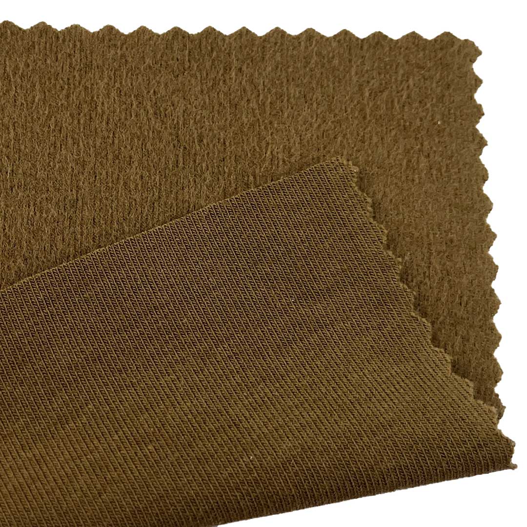Weighing 260gsm (9.2oz), this refined double knit rib fabric combines 44% cotton, 44% viscose, and 12% spandex with a brushed finish to create a soft hand feel material ideal for dresses, cardigans, and pants. The double knit rib construction provides enhanced structure, subtle texture, and natural stretch, while the brushed surface delivers plush tactile comfort. Cotton ensures natural breathability and comfort, viscose adds softness and drape, and spandex offers significant stretch and recovery.