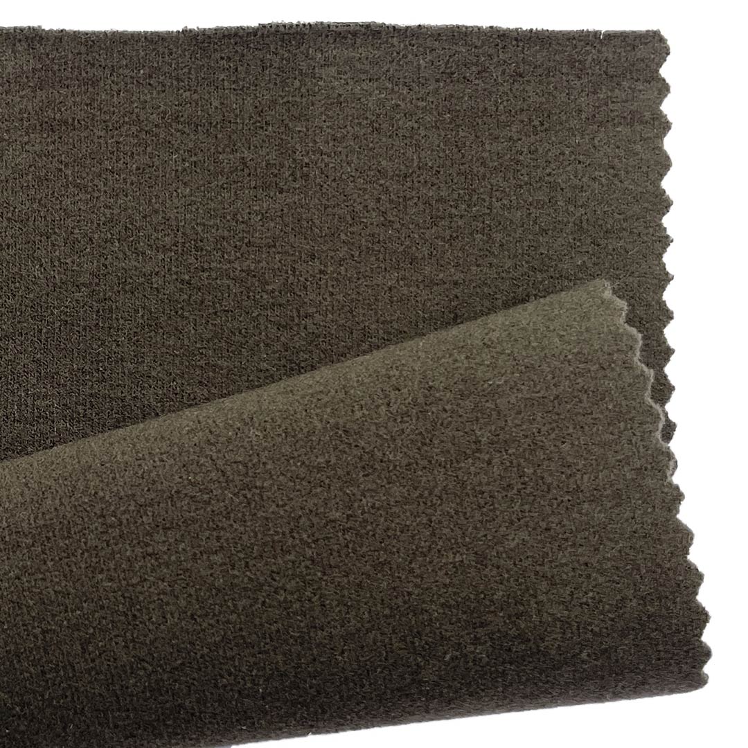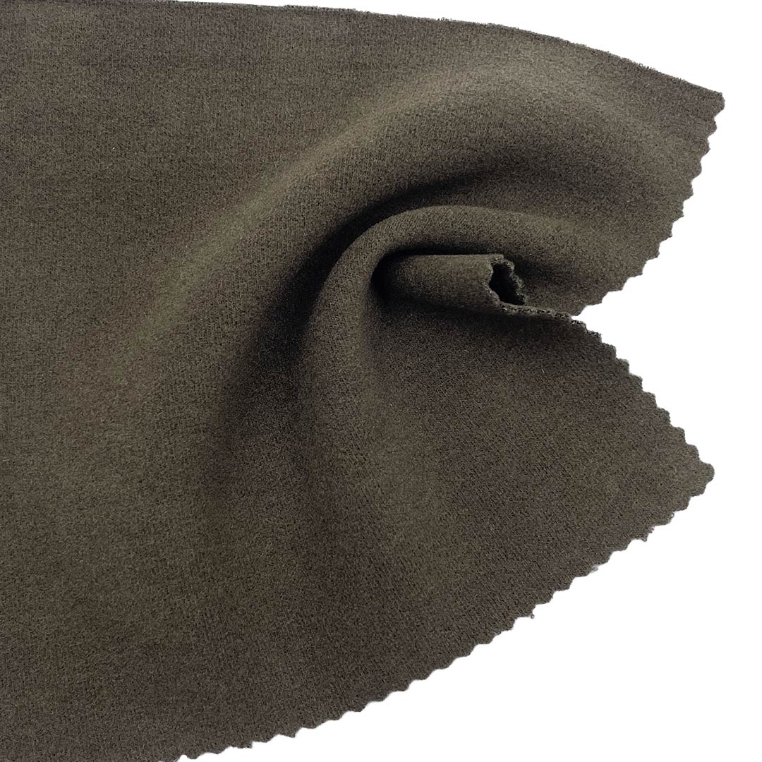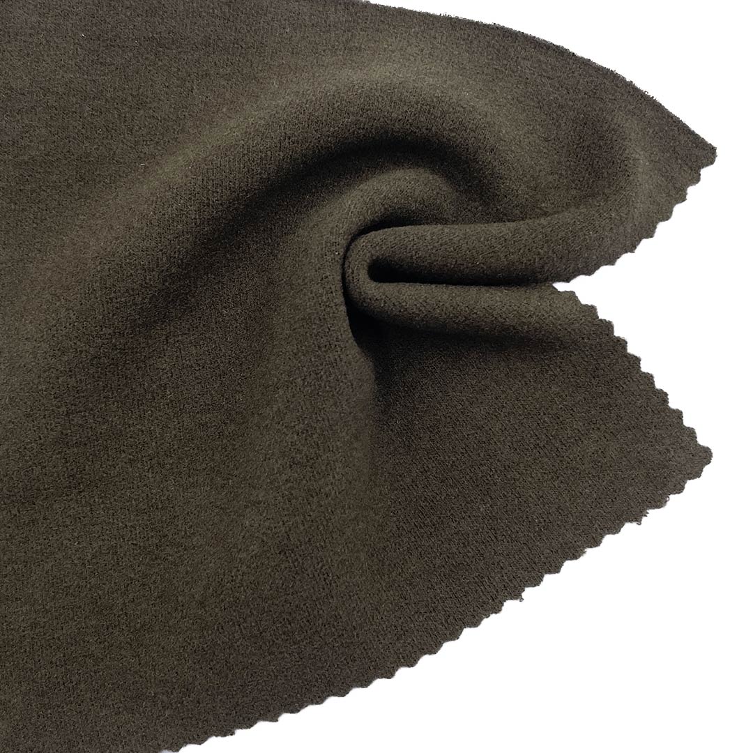 This 300gsm brushed interlock fabric features a sophisticated blend of 42% Acrylic, 18% Tencel, 28% Rayon, and 12% Spandex, creating a premium material with exceptional softness and stretch. The acrylic content provides warmth, a wool-like softness, and excellent shape retention, while the Tencel adds a smooth, silky feel and superior moisture-wicking properties from its sustainable wood-based origin. The rayon contributes to the fabric's drape and soft hand feel, and the high spandex content ensures superior 4-way stretch and outstanding recovery for freedom of movement. The interlock construction offers thickness and stability, while the brushing process creates a soft, fuzzy surface that enhances warmth and comfort. This versatile fabric is perfectly suited for creating cozy dresses and comfortable long sleeve shirts. For care, we recommend machine washing in cold water, tumble drying on low heat, and avoiding bleach to maintain the fabric's texture and elasticity.