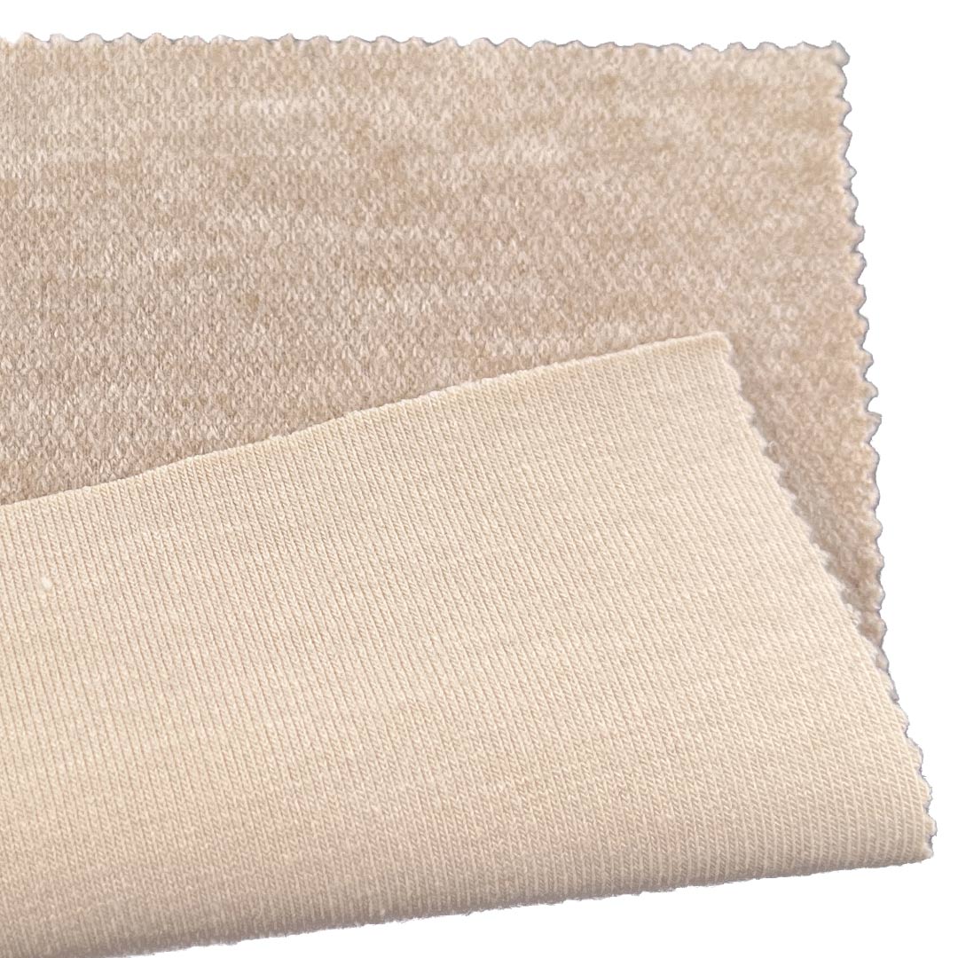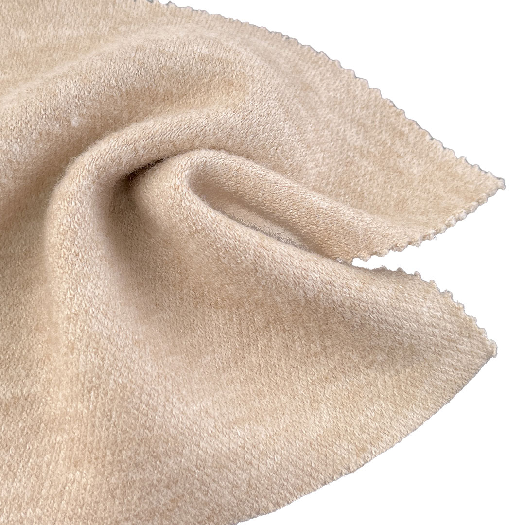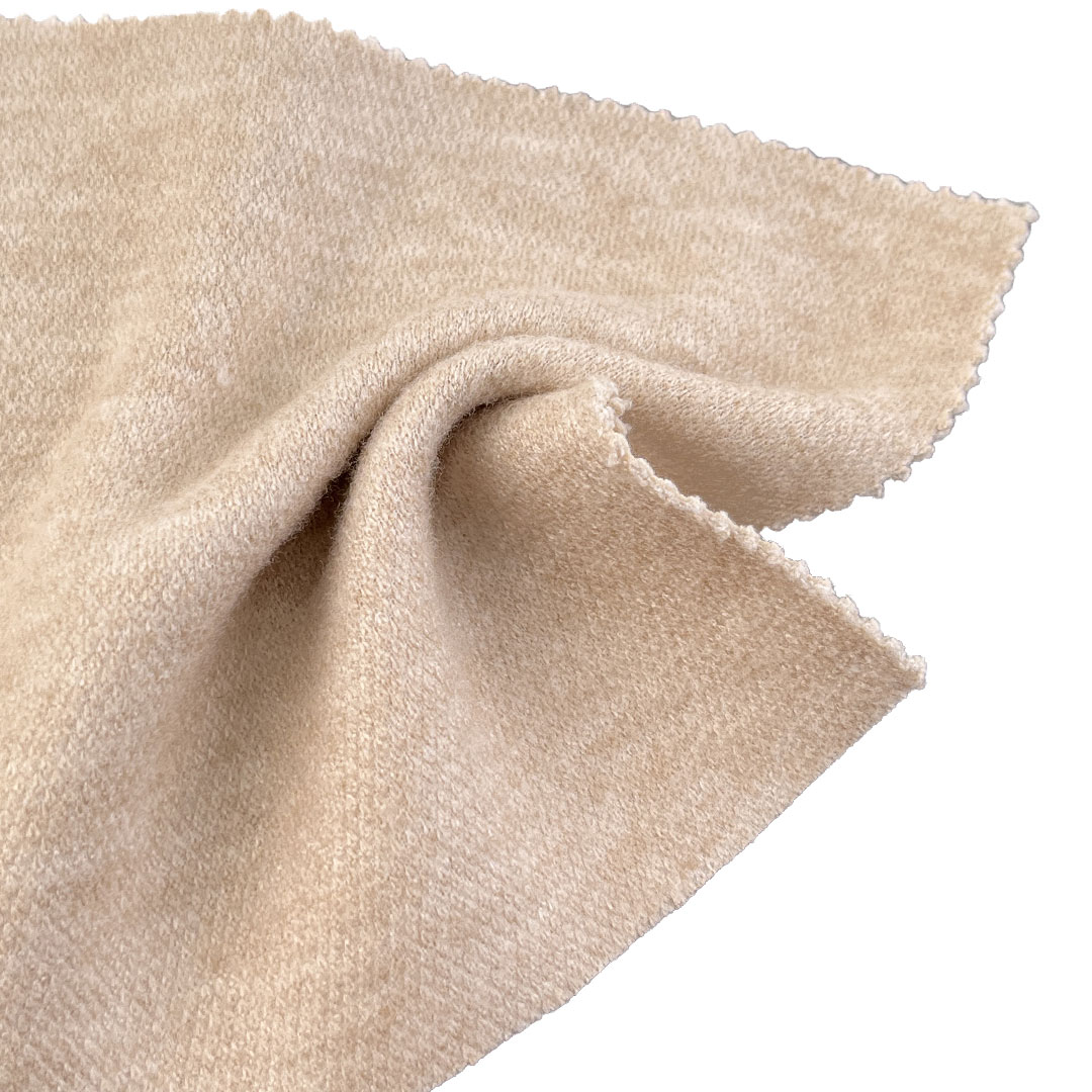 Weighing 500gsm (17.6oz), this substantial double knit fabric features a sophisticated two-layer construction with brushed finish for exceptional soft hand feel, ideal for hoodies and pants. The face side combines 55% polyester, 30% viscose, 13% nylon, and 2% spandex for durability, drape, and subtle stretch, while the back side uses 68% polyester, 29% viscose, and 3% spandex for enhanced comfort and recovery.