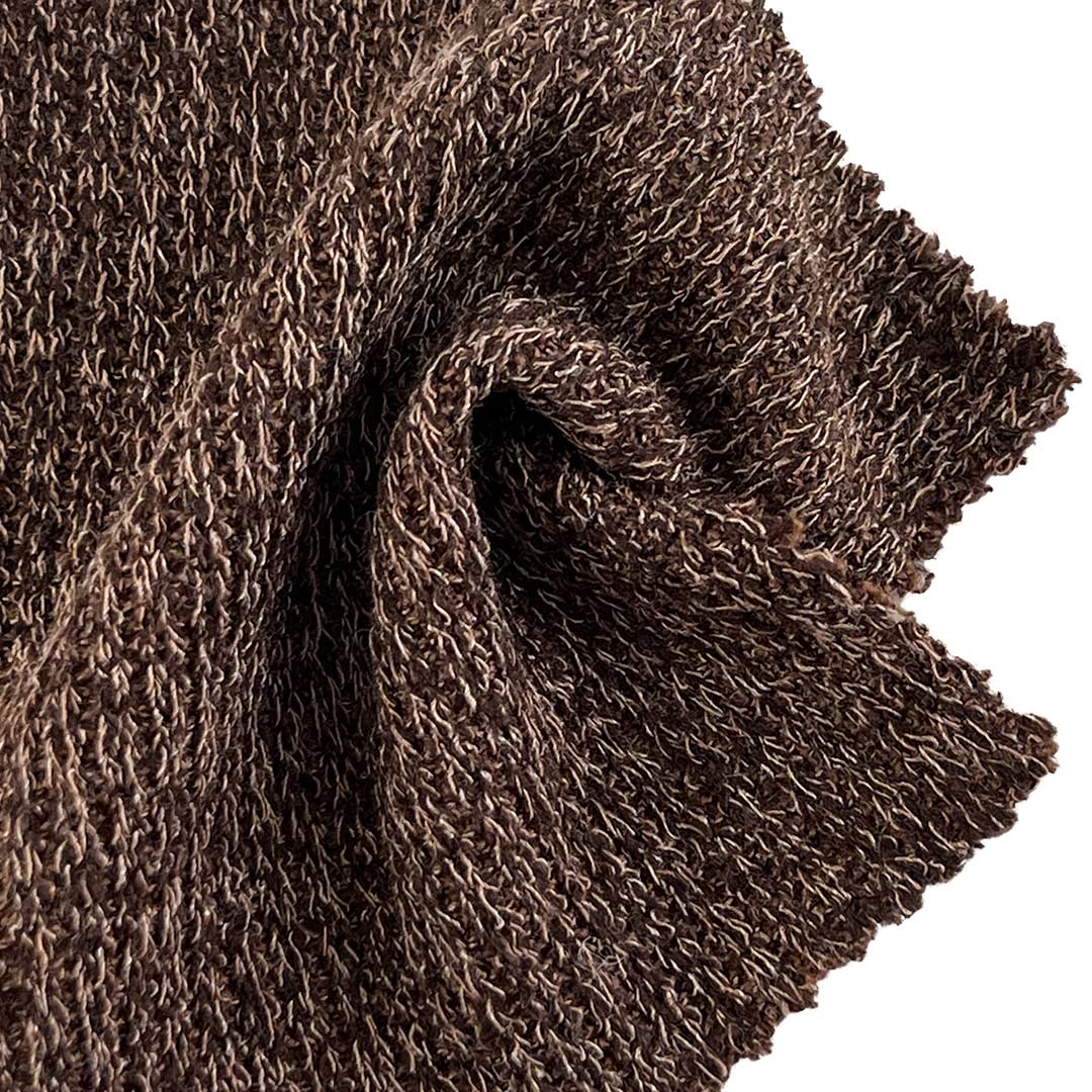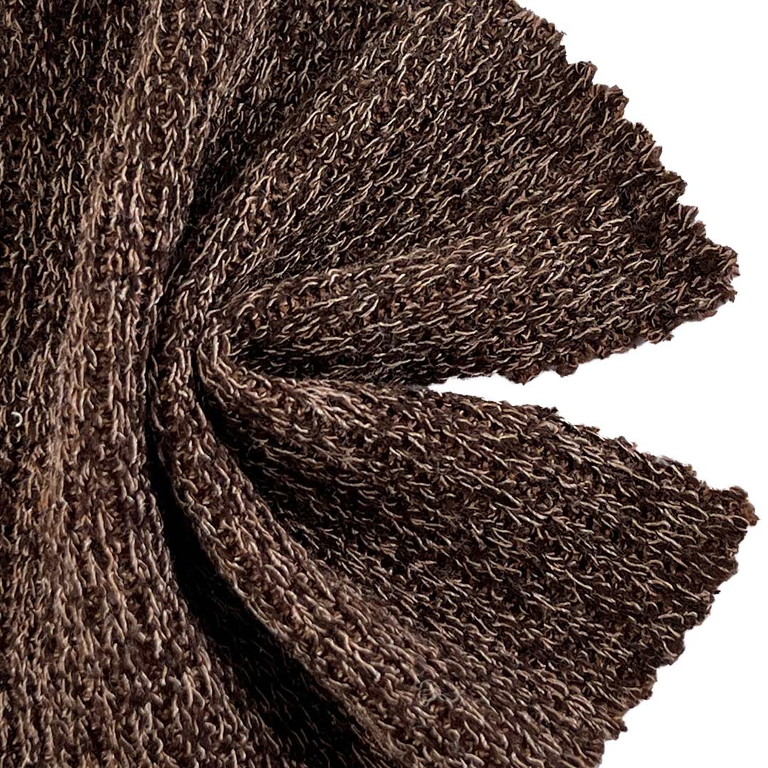Polyester ensures durability, color vibrancy, and wrinkle resistance, Viscose adds breathability, moisture-wicking comfort, and a smooth drape, while the 7% Spandex delivers generous stretch and reliable recovery for ease of movement and a flattering, flexible fit. Weighing 220gsm, this medium-weight fabric offers comfortable coverage and structure without bulk, making it suitable for transitional weather and year-round layered garments. Its textured surface and breathable composition allow it to adapt gracefully to flowing dresses, versatile cardigans, and cozy sweaters.
