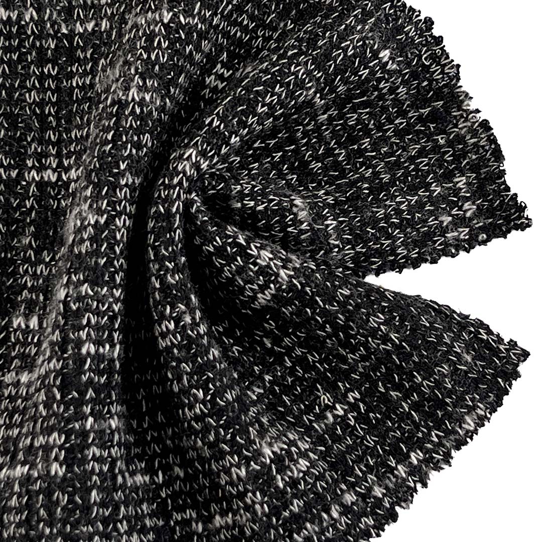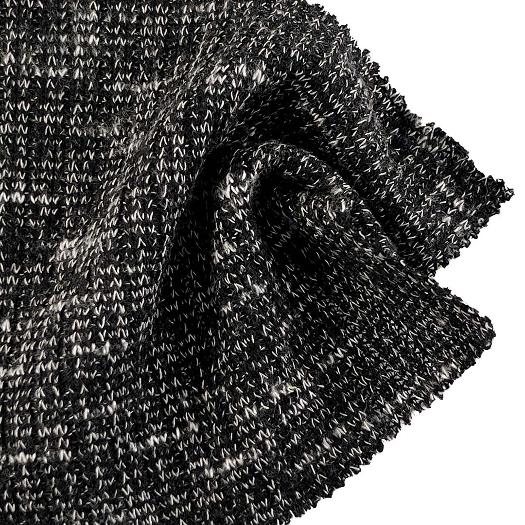 Polyester ensures durability, colorfastness, and wrinkle resistance, Viscose adds breathability, moisture-wicking comfort, and a smooth drape, while the 5% Spandex provides flexible stretch and reliable recovery for ease of movement and a comfortable fit. Weighing 250gsm, this medium-weight fabric offers structured yet airy drape and cozy warmth, making it suitable for transitional weather and year-round layered garments. Its textured surface combines visual richness with a pleasantly soft tactile quality, allowing it to adapt gracefully to flowing dresses, elegant shawls, versatile cardigans, and cozy sweaters. The fabric maintains its cable and jacquard definition, resists pilling, and delivers consistent performance with proper care.