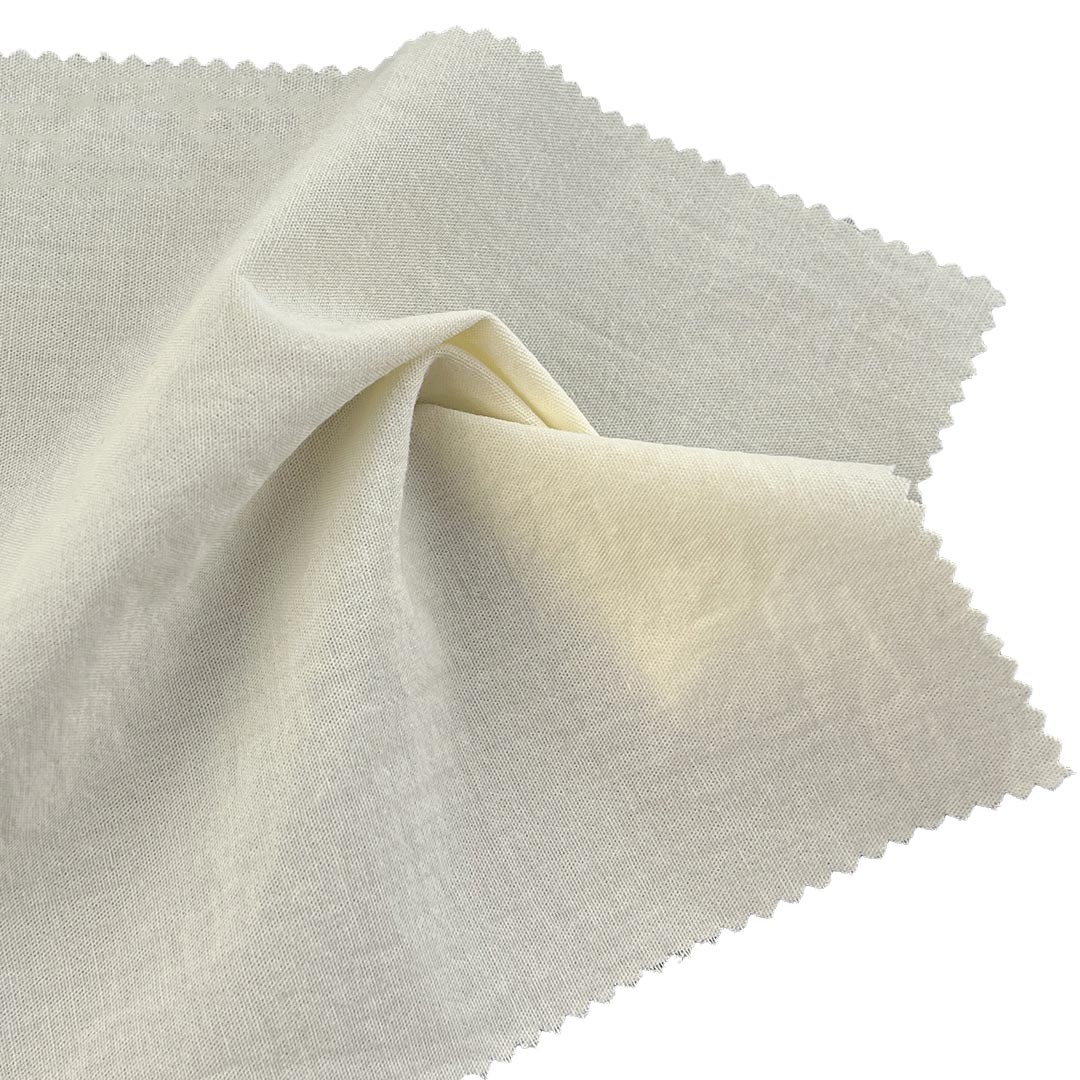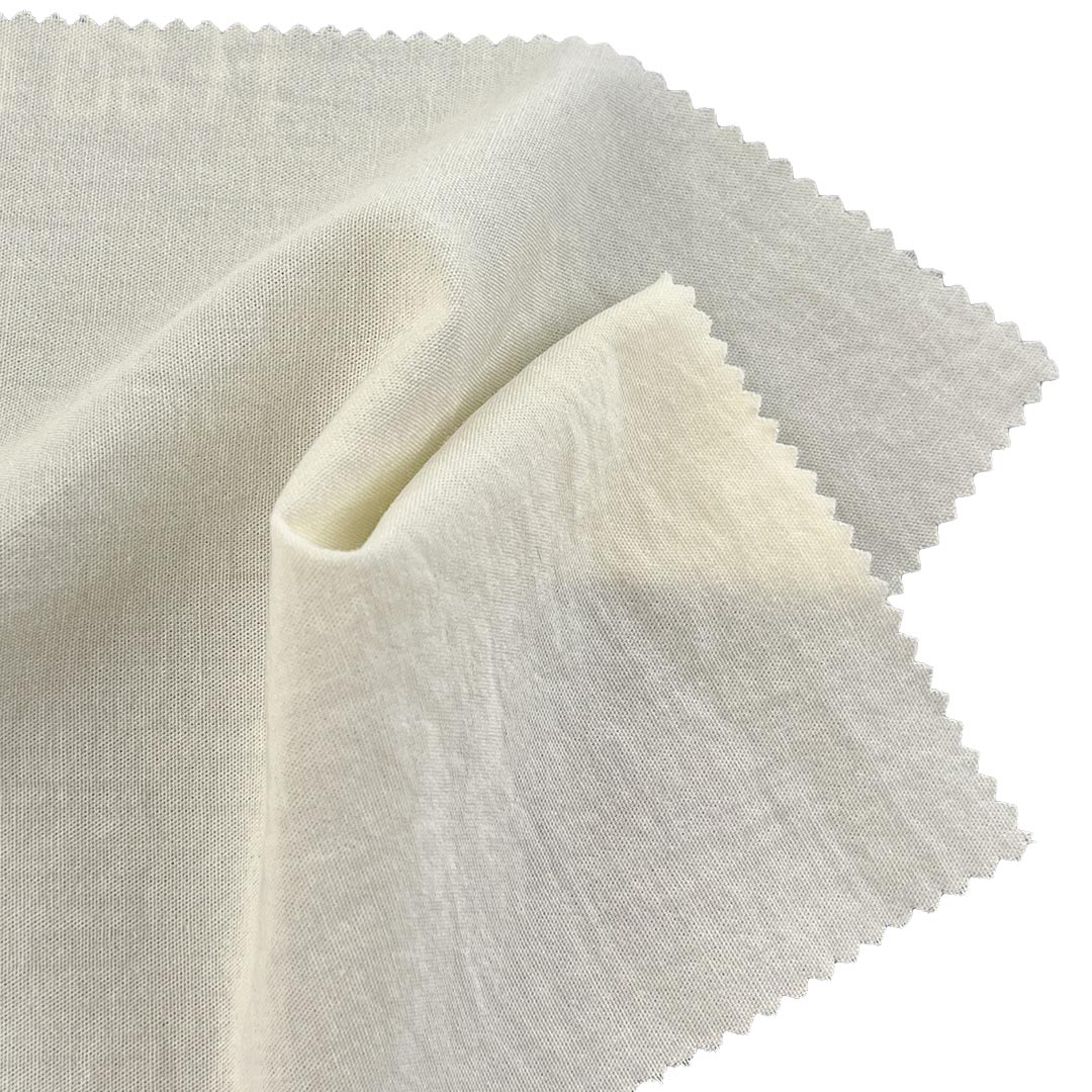The all-cotton construction ensures excellent breathability and moisture management, while the 100gsm weight provides optimal lightweight stability for garments requiring shape retention. The fabric's smooth finish and crisp character make it particularly valuable for suit interlinings where lightweight support is essential, as well as for women's blouses that demand both elegant drape and clean silhouette.