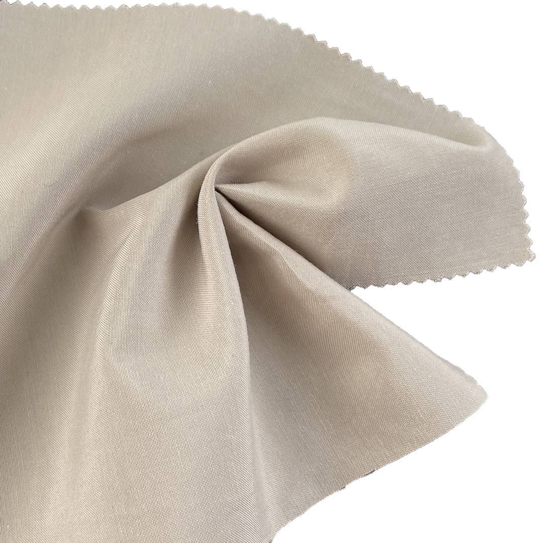 Experience the refined structure and graceful drape of our 120gsm cambric fabric, expertly crafted from a balanced blend of 53% Cotton and 47% Viscose. This versatile fabric delivers a smooth, crisp hand feel combined with a beautiful drape, making it ideal for dresses, trench coats, shirts, and a wide range of lining applications including interlining and suit lining. Cotton provides breathability, softness, and structural integrity, while viscose enhances drape, luster, and moisture-wicking comfort.