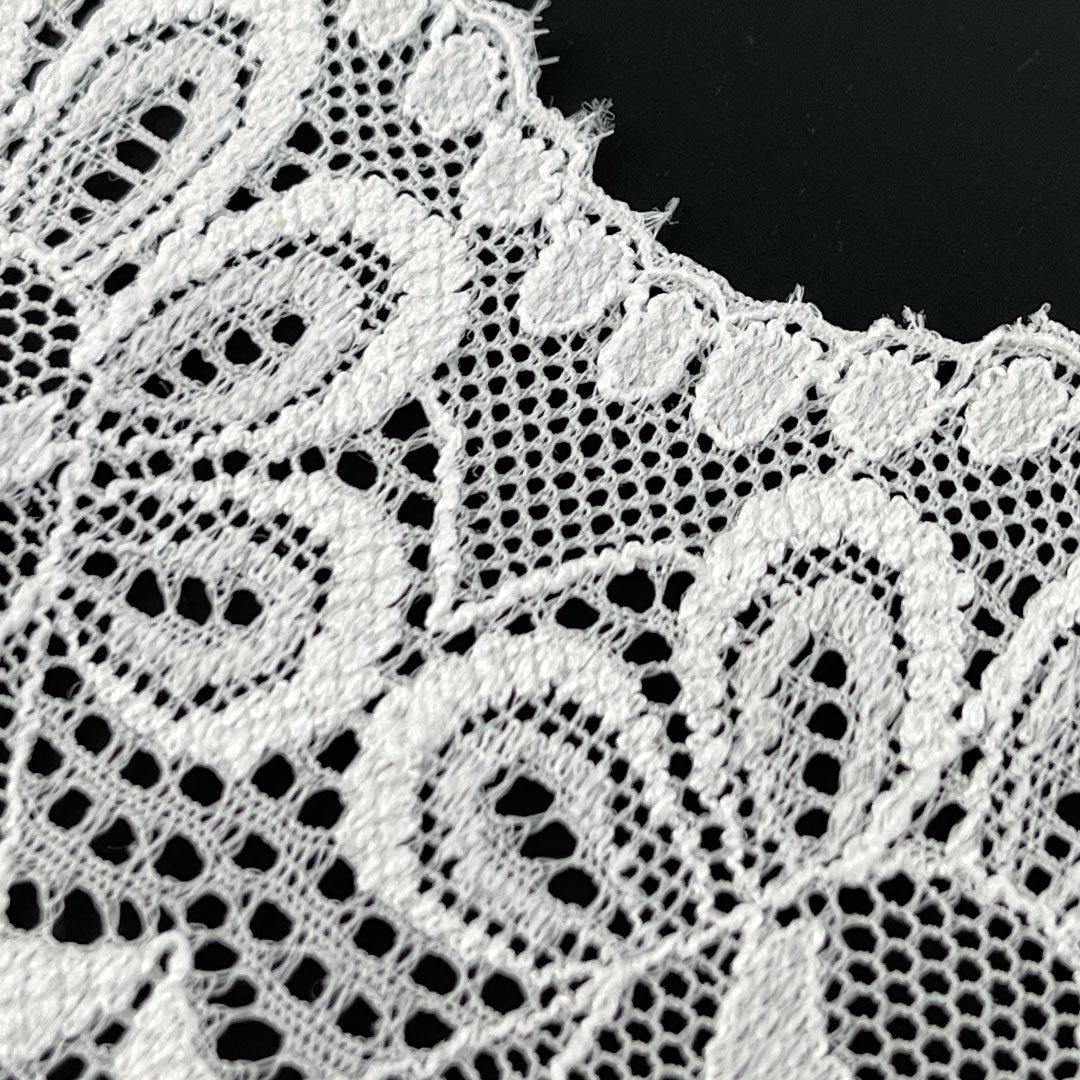 The fabric maintains stable dimensional characteristics while possessing appropriate elasticity, suitable for various skirt pattern designs. This lace fabric can be used as main fabric, decorative fabric, or accessory material, adding refined details to garment designs. Its soft hand feel and delicate fabric texture make it an ideal choice for fashion skirts. The easy-maintenance fabric characteristics allow this lace textile to preserve its beautiful appearance and fabric quality over time.