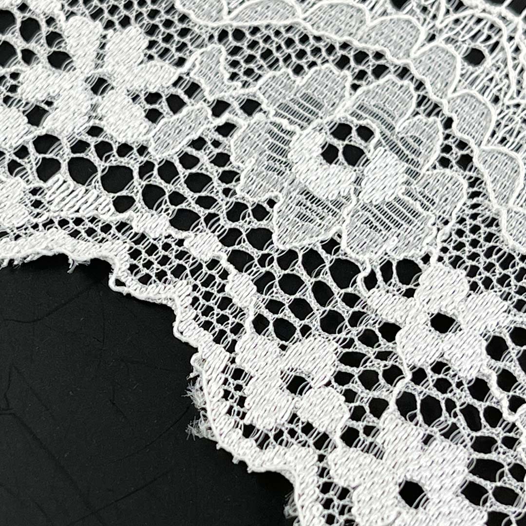 This material maintains an elegant appearance while offering perfect flexibility for different clothing styles. The fabric can be used as decorative trim for dresses or as delicate accents for skirts, adding feminine charm to diverse fashion creations. Its lightweight character and reliable craftsmanship make this lace material an ideal choice for both casual and formal wear. The easy-care fabric properties allow this lace material to maintain its quality and beauty through regular use.