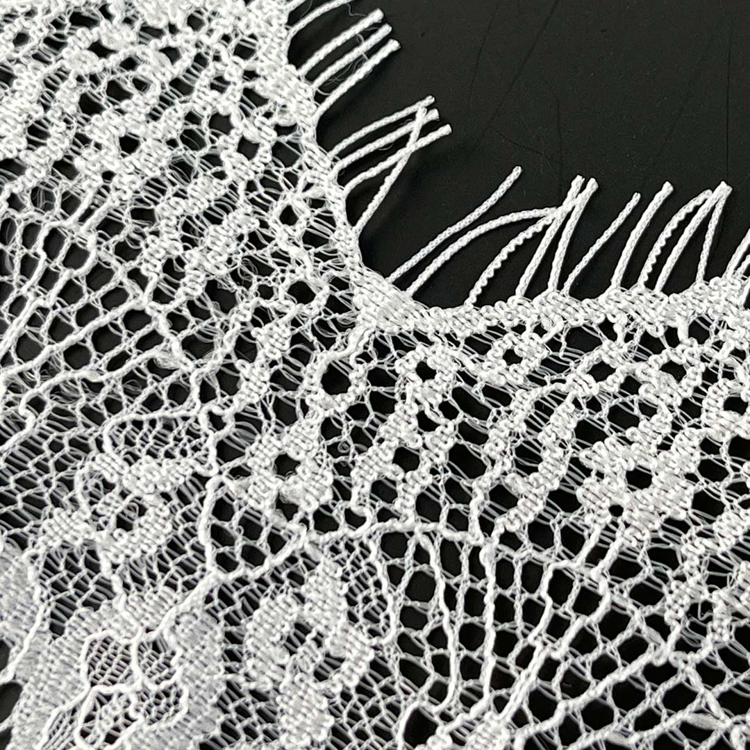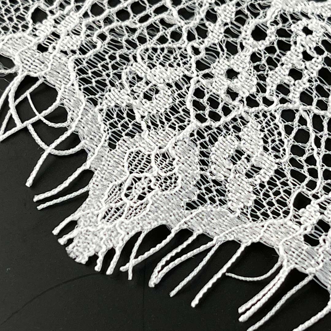 As a premium textile product specifically designed for skirts and wedding dresses, our Lace Style Lace Material demonstrates exceptional fabric characteristics. This fringed lace textile features unique fringe-like edge designs that create strongly textured patterns on delicate mesh backing, producing a layered feminine fabric particularly suitable for skirt and wedding dress applications. This lace material offers excellent breathability and draping properties, with its precise fabric structure ensuring textile stability during garment production.