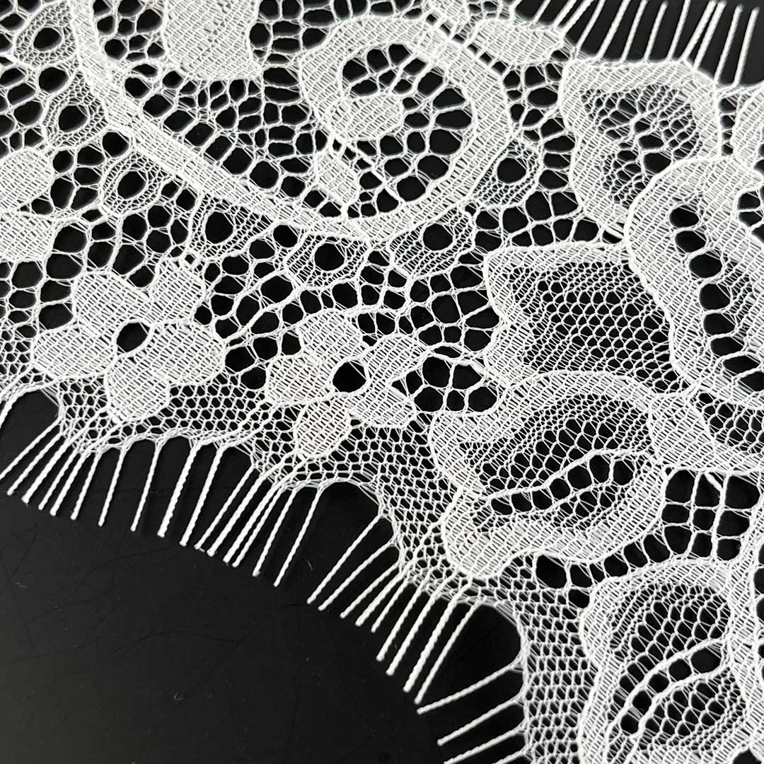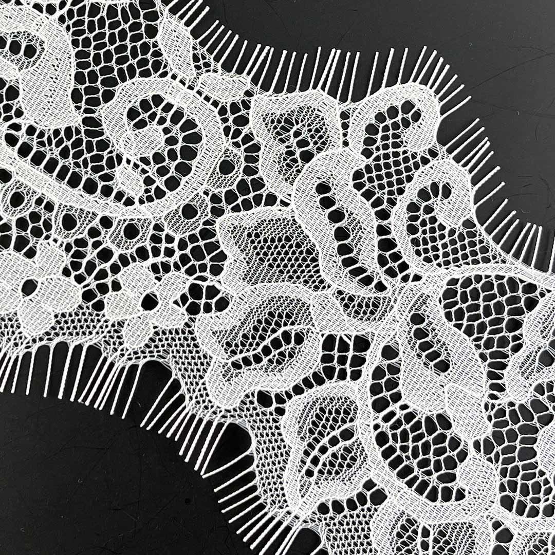 This material maintains an elegant appearance while offering perfect adaptability for different garment styles. The fabric can be used as decorative trim for underwear or as delicate accents for dresses, adding feminine appeal to diverse apparel creations. Its comfortable touch and reliable craftsmanship make this lace material an ideal choice for both intimate wear and fashionable dresses. The easy-care fabric characteristics allow this lace material to maintain its quality and appearance through regular use.