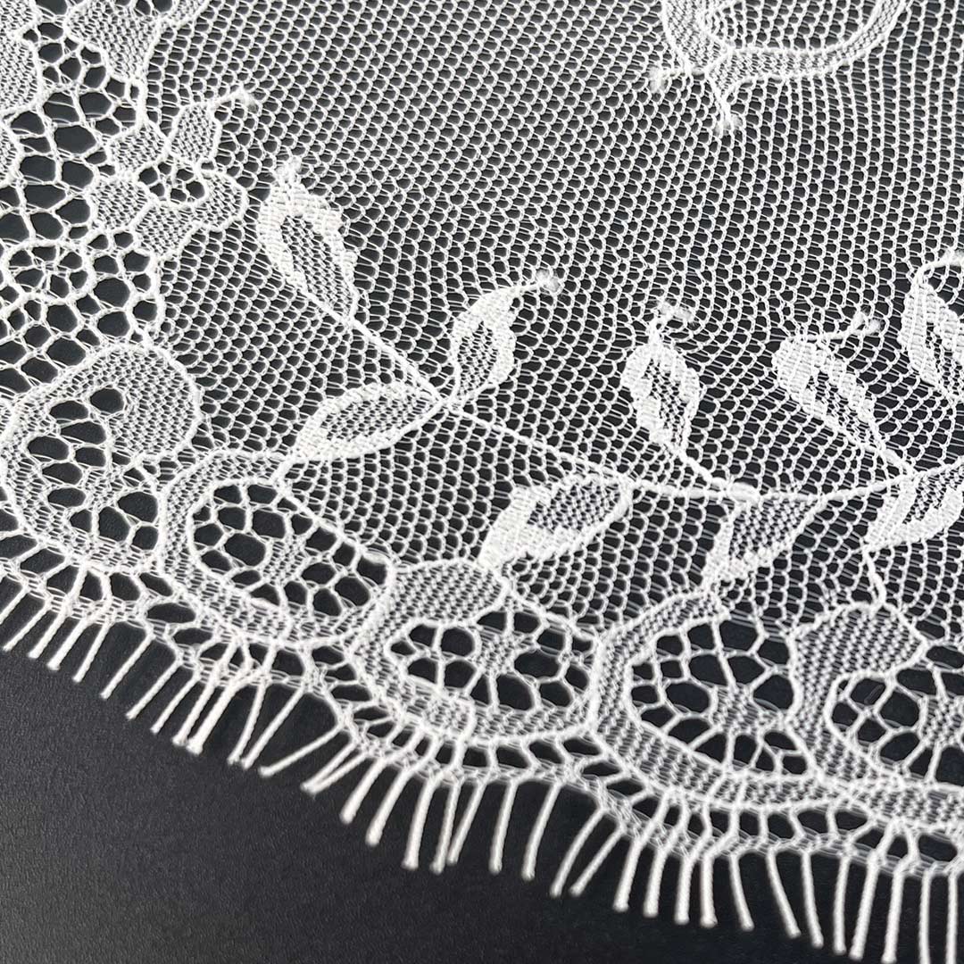 Easy to care for and machine washable, this lace fabric retains its intricate designs and delicate beauty through repeated use. Whether creating breathtaking wedding gowns, luxurious underwear, fashionable dresses, chic skirts, or delicate trims, this fabric empowers designers to bring timeless elegance and practical functionality to their creations.