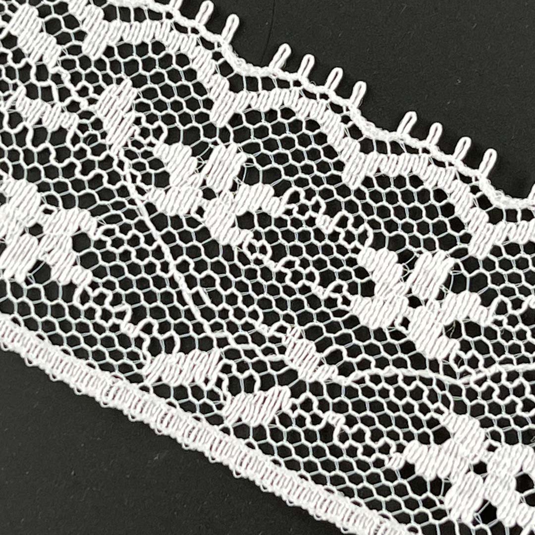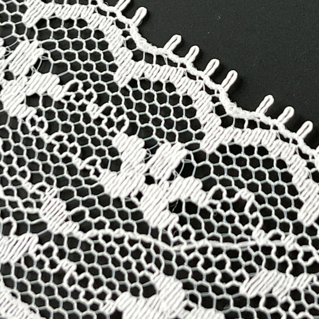Easy to care for and hand washable, this lace preserves its intricate details and shape over time. Perfect for designers creating coordinated bridal sets or luxurious intimate wear that combines heirloom craftsmanship with modern comfort needs.