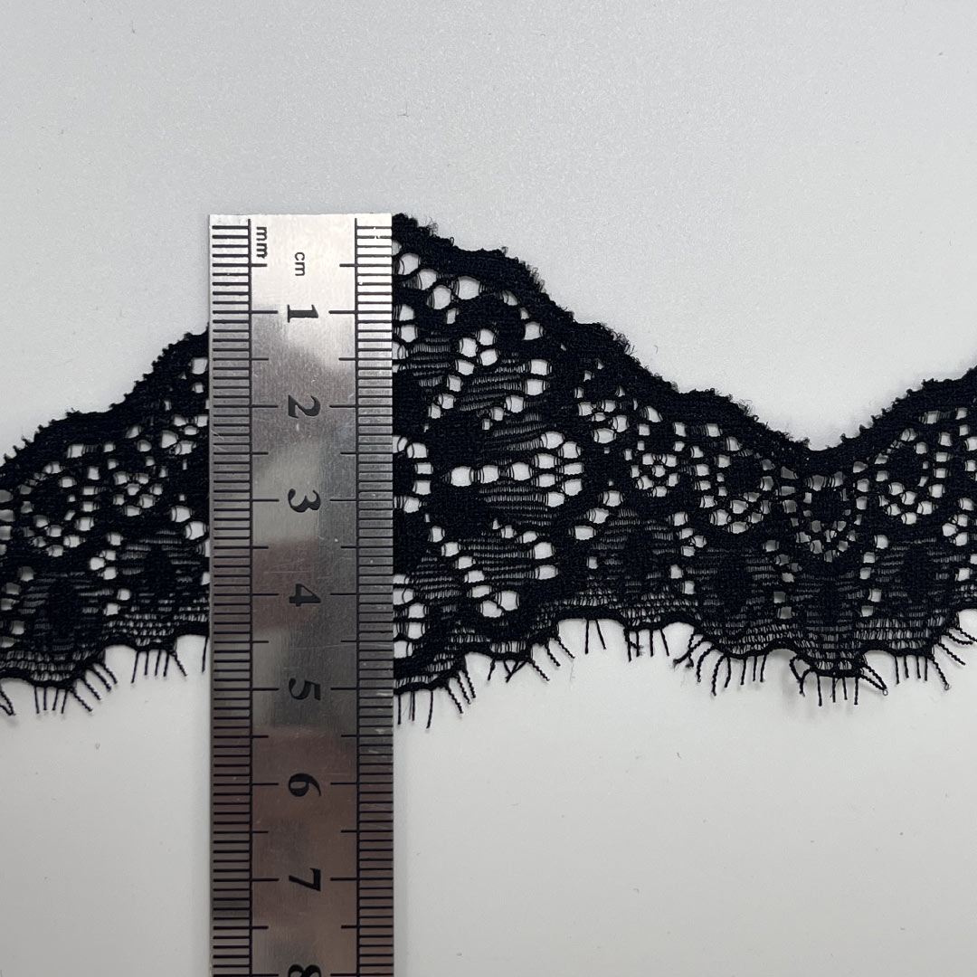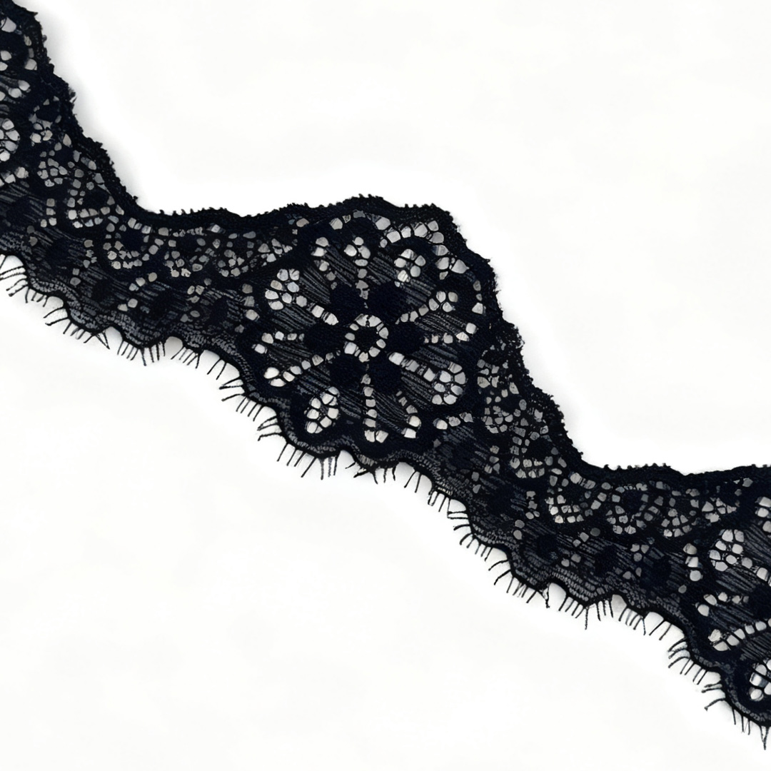 Available in a variety of colors to meet different design needs, this lace holds its shape and vibrant colors well, making it a versatile choice for designers seeking to add romantic accents to their creations.