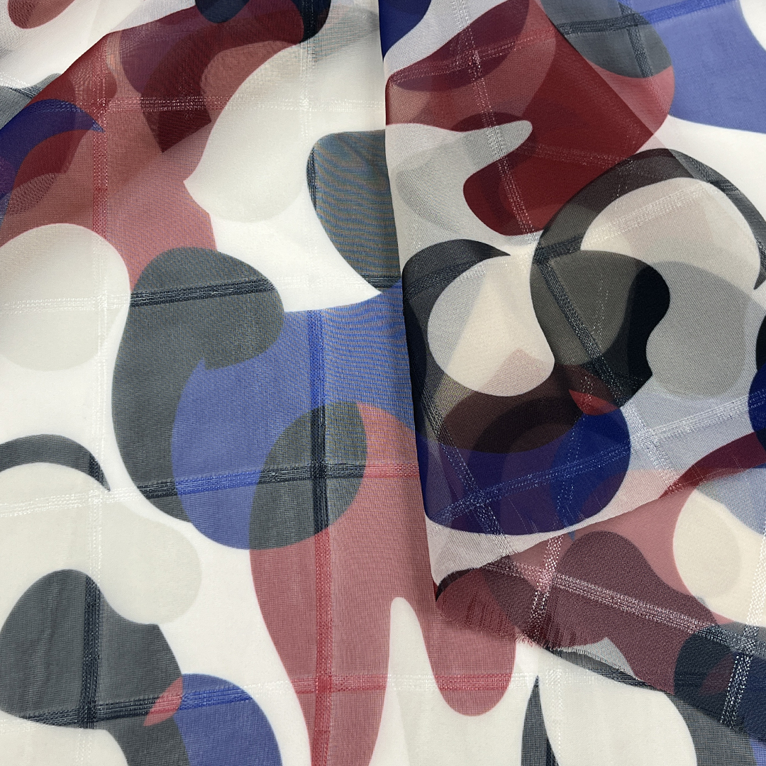 60gsm 100% Polyester Plaid Drapey Hand Feel Fabric Sun Protective Clothing 1K46