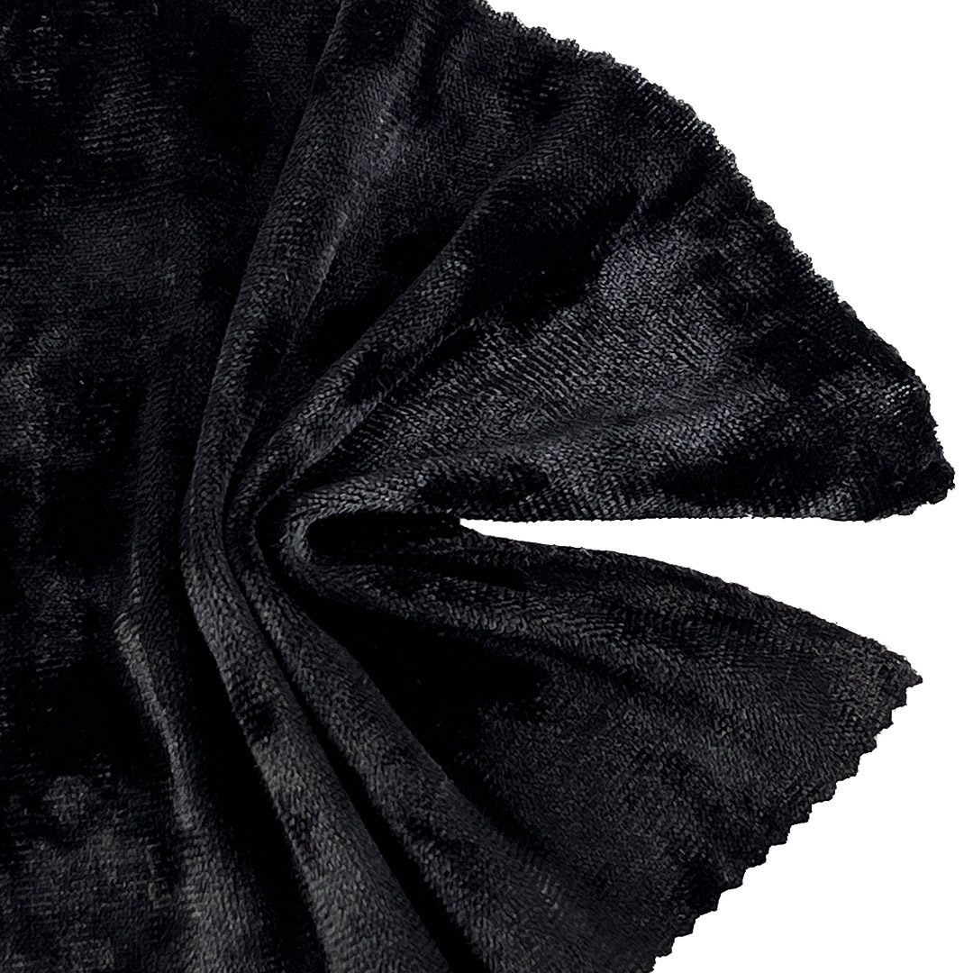 Crafted for sophisticated elegance and sumptuous comfort, our 260gsm dress crushed velvet material blends 95% Polyester and 5% Spandex to create a plush, flexible material ideal for skirts and evening dresses. This fabric features the distinctive crushed velvet texture, known for its irregular, shimmering pile that delivers a plush hand feel and a rich, dimensional surface with a graceful drape. The high polyester content ensures outstanding durability, vibrant color retention, and resistance to wrinkles and crushing, while the 5% Spandex provides comfortable stretch and reliable recovery for ease of movement and a flattering, form-fitting silhouette.
