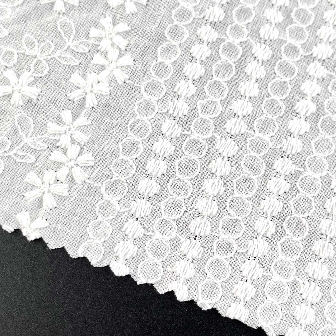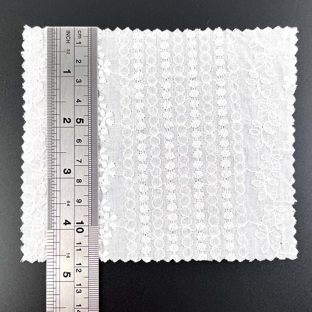 With its Soft Cotton Fabric hand feel, the material provides gentle contact against the skin, while the natural drape of high-quality cotton allows each garment to move gracefully with the wearer's form. The eyelet embroidery introduces a Delicate Embroidered Fabric elegance, making the fabric versatile enough for both casual daytime wear and refined evening attire. Whether used as Fashion Embroidered Cloth for modern Tops, as Floral Embroidered Fabric for feminine dresses, or as Bridal Lace Fabric for special occasions, this Eco-Friendly Cotton Textile aligns seamlessly with sustainable fashion values thanks to its biodegradable, natural composition.