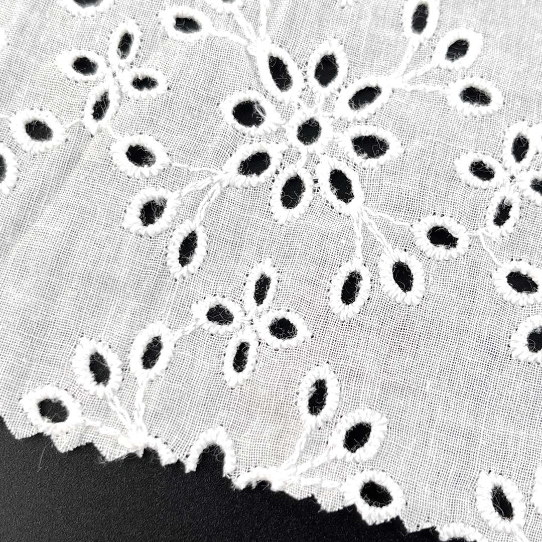 Whether employed as Fashion Embroidered Cloth for modern tops, as Floral Embroidered Fabric for feminine dresses, or as Bridal Lace Fabric for wedding and formal wear, this Eco-Friendly Cotton Textile aligns seamlessly with sustainable fashion principles due to its biodegradable, naturally sourced composition. Additionally, the fabric readily supports Custom Embroidered Fabric projects, offering designers the flexibility to realize bespoke, personalized creations with precision and creativity. Marrying timeless elegance with everyday practicality, this cotton eyelet fabric emerges as an exemplary selection for Luxury Embroidered Cloth, uniting heritage craft techniques with modern durability and wearability to ensure each finished piece is as enduring in quality as it is captivating in beauty.