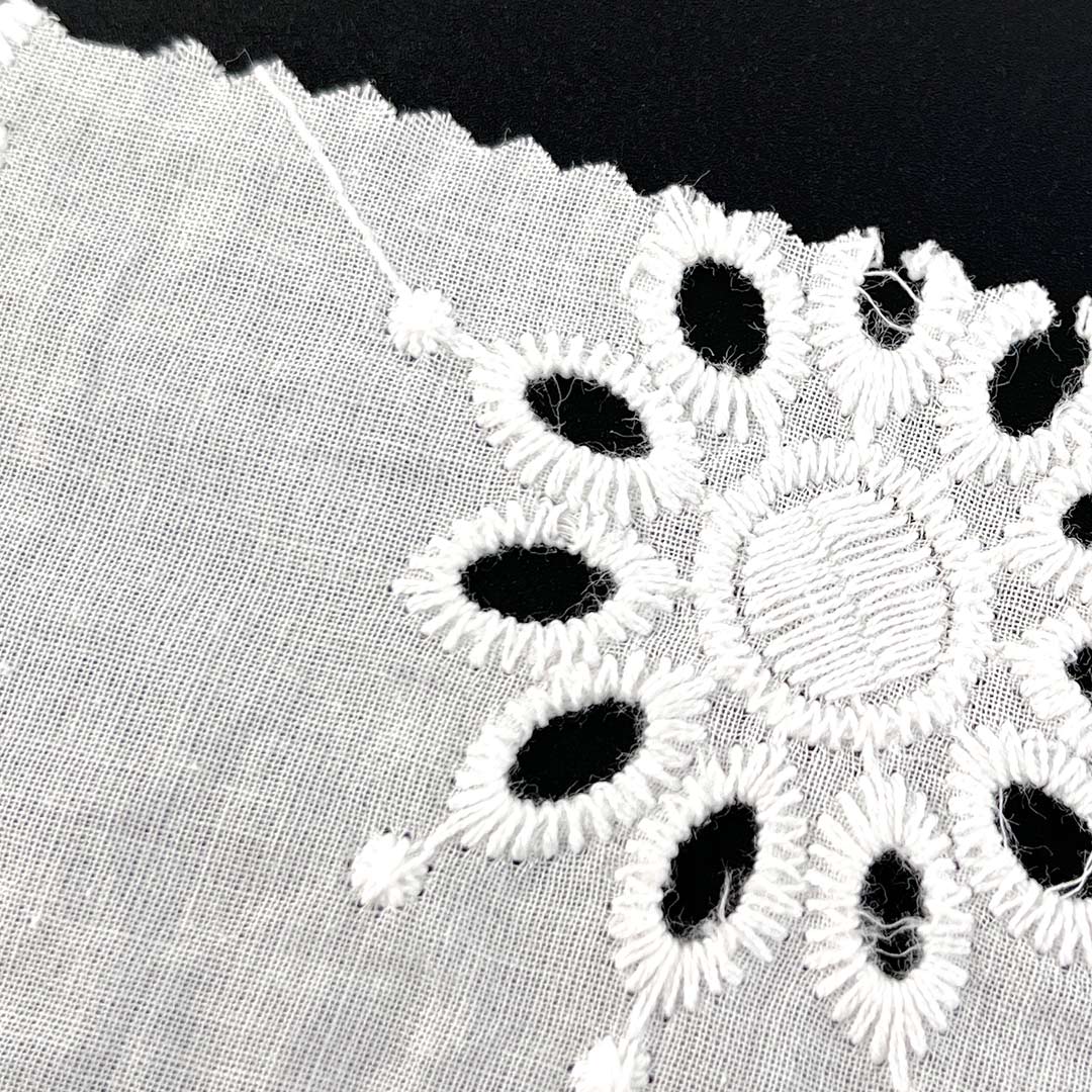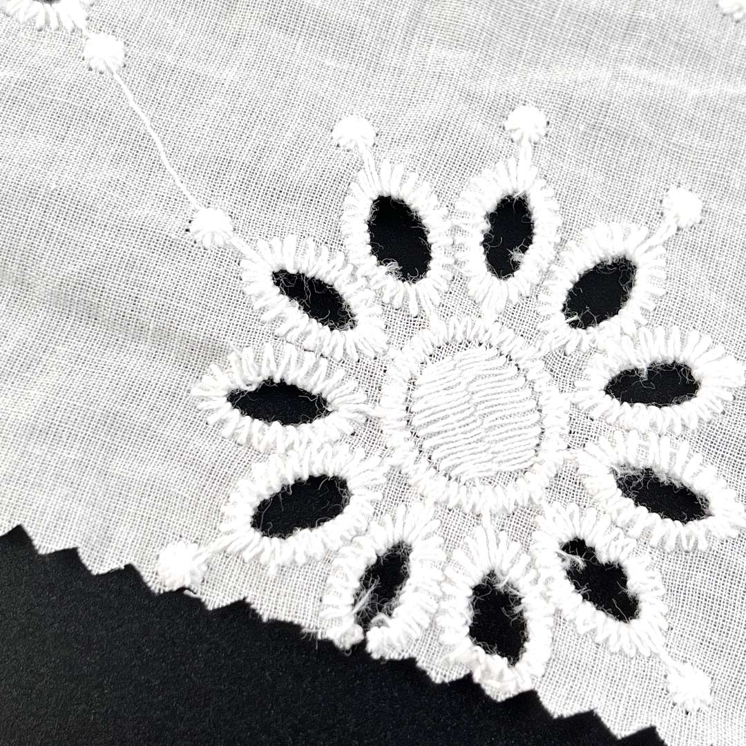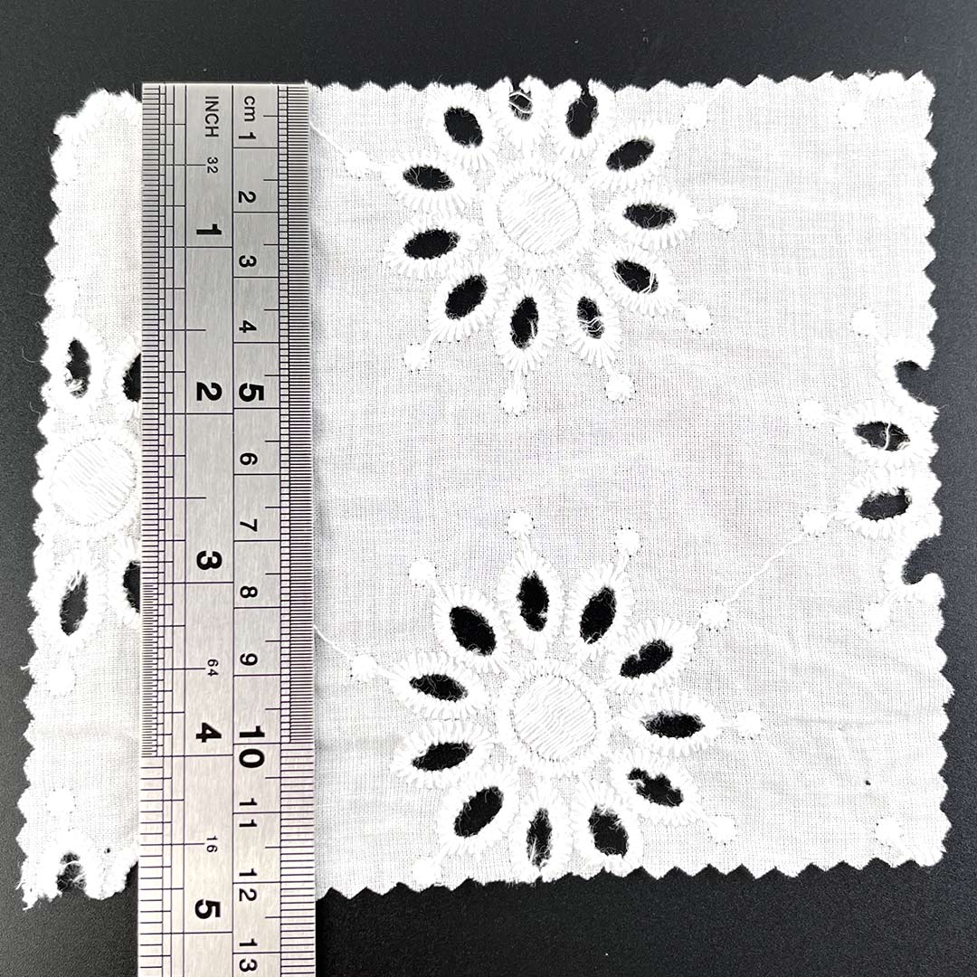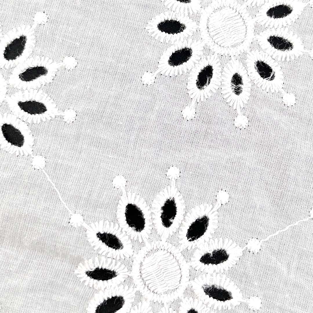 With its Soft Cotton Fabric hand feel, the material provides gentle contact against the skin, while the natural drape of high-quality cotton allows each garment to move gracefully with the wearer's form. The eyelet embroidery introduces a Delicate Embroidered Fabric elegance, making the fabric versatile enough for both casual daytime wear and refined evening attire. Whether used as Fashion Embroidered Cloth for modern Tops, as Floral Embroidered Fabric for feminine dresses, or as Bridal Lace Fabric for special occasions, this Eco-Friendly Cotton Textile aligns seamlessly with sustainable fashion values thanks to its biodegradable, natural composition.