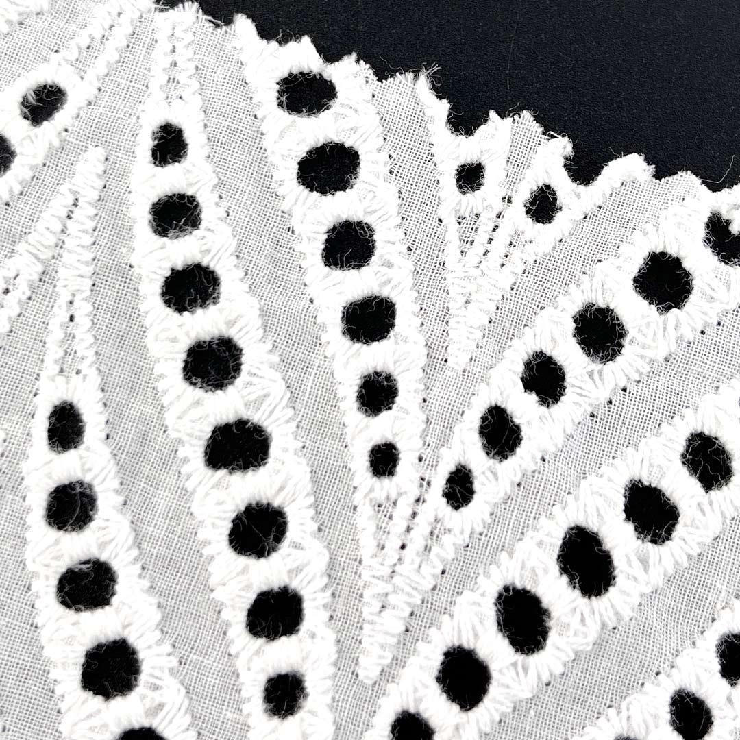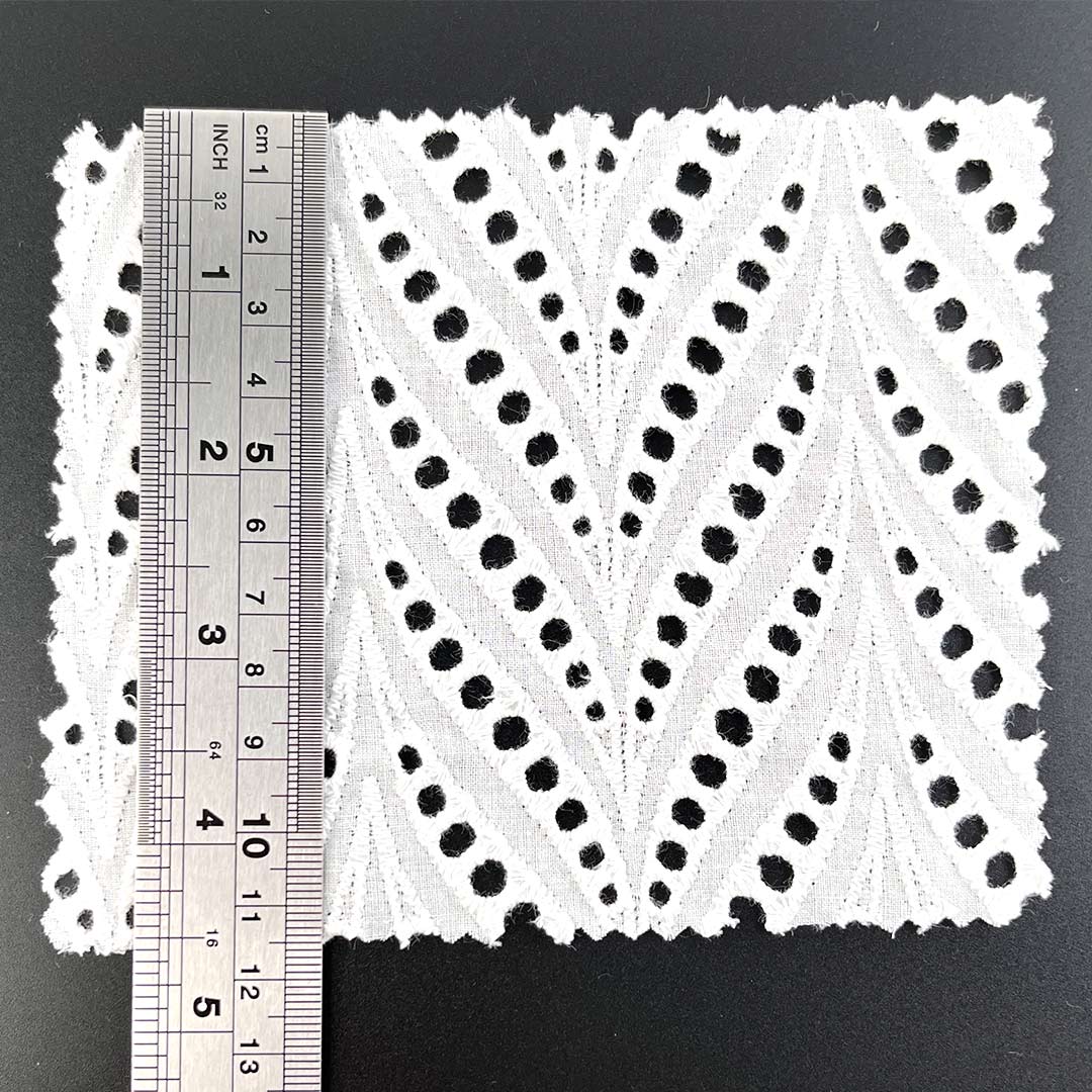Crafted entirely from 100% premium cotton, this refined eyelet fabric embodies the meticulous artistry of precision water-soluble embroidery fabric, where every stitch is executed with exacting clarity to create intricately defined openwork patterns that offer both exceptional breathability and a sophisticated tactile texture. The pure cotton composition ensures unparalleled softness, superior moisture-wicking performance, and gentle comfort against the skin, making it an ideal choice for sensitive wearers and extended daily use.