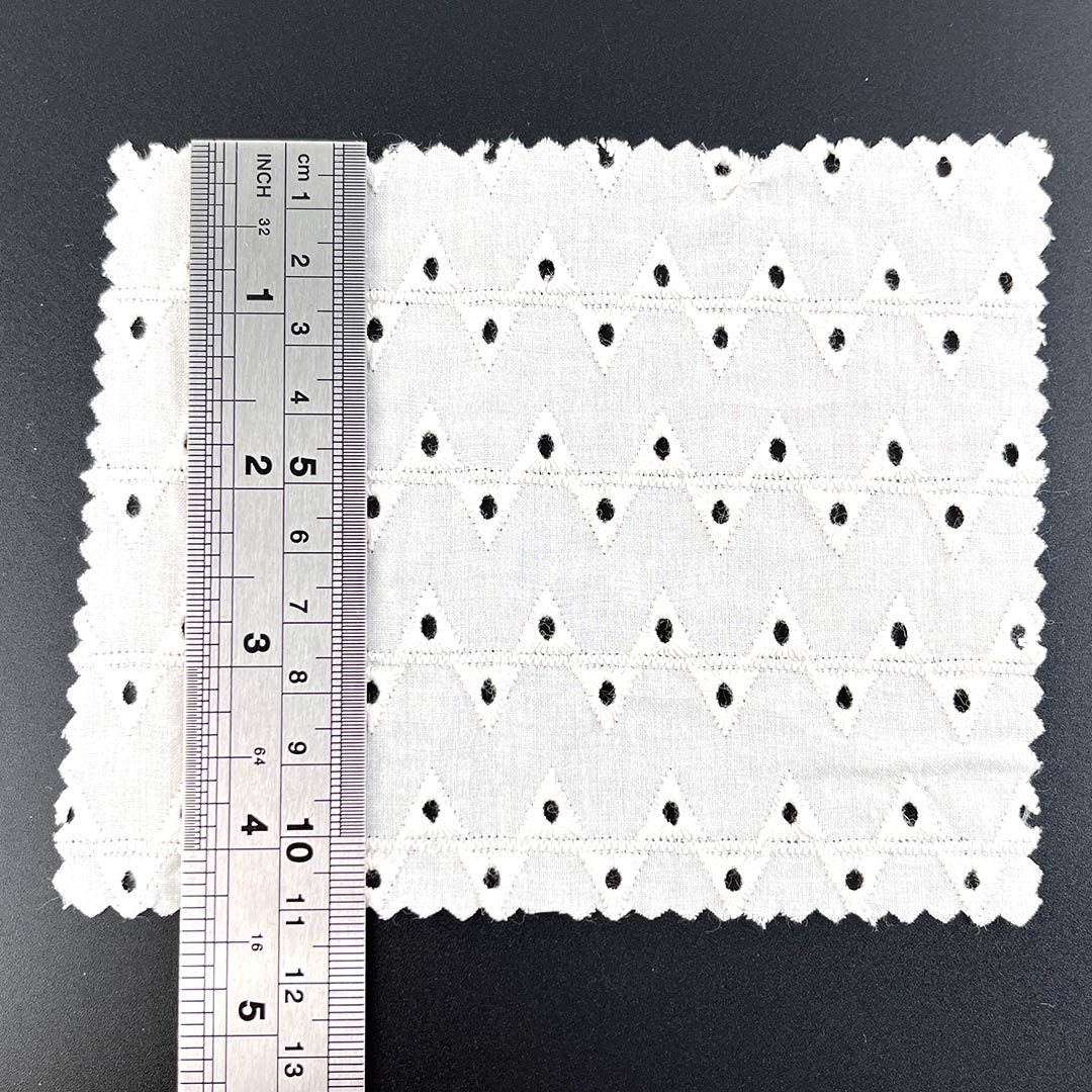 Crafted entirely from 100% premium cotton, this contemporary eyelet fabric showcases the structured artistry of geometric water-soluble embroidery fabric, featuring precise, clean-lined openwork patterns that create a modern textured aesthetic with exceptional breathability. The pure cotton composition ensures unparalleled softness, superior moisture-wicking performance, and gentle comfort against the skin, making it an ideal choice for sensitive wearers and extended daily use.