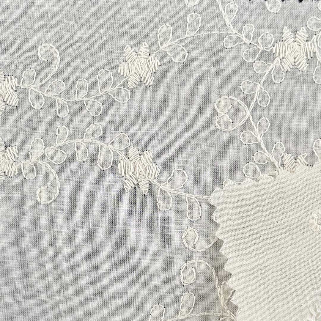 Lightweight and gracefully fluid, this fabric drapes with structured elegance, perfectly suited for creating chic dresses and flowing blouses that harmonize refined femininity with contemporary versatility. The advanced water-soluble technique yields exquisitely detailed, lace-inspired motifs that enhance airflow while delivering a sumptuous tactile experience—ideal for warm-weather ensembles and elevated occasions. Each embroidered element adds a layer of dimensional beauty and artisanal distinction to the fabric, transforming classic silhouettes into statement pieces with timeless grace. Easy to care for and machine washable, this fabric maintains the precision of its luxurious embroidery, vibrant color integrity, and exquisite hand-feel over time.