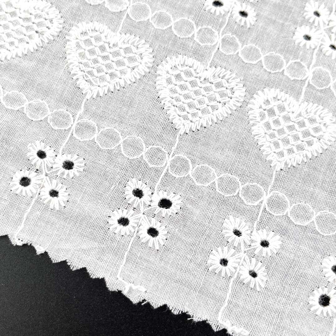 Crafted entirely from 100% premium cotton, this versatile eyelet fabric embraces the creative potential of custom water-soluble embroidery material, allowing for unique, tailor-made openwork patterns that deliver both exceptional breathability and a distinctive textured aesthetic. The pure cotton composition ensures unparalleled softness, superior moisture-wicking performance, and gentle comfort against the skin, making it an ideal choice for sensitive wearers and everyday elegance.