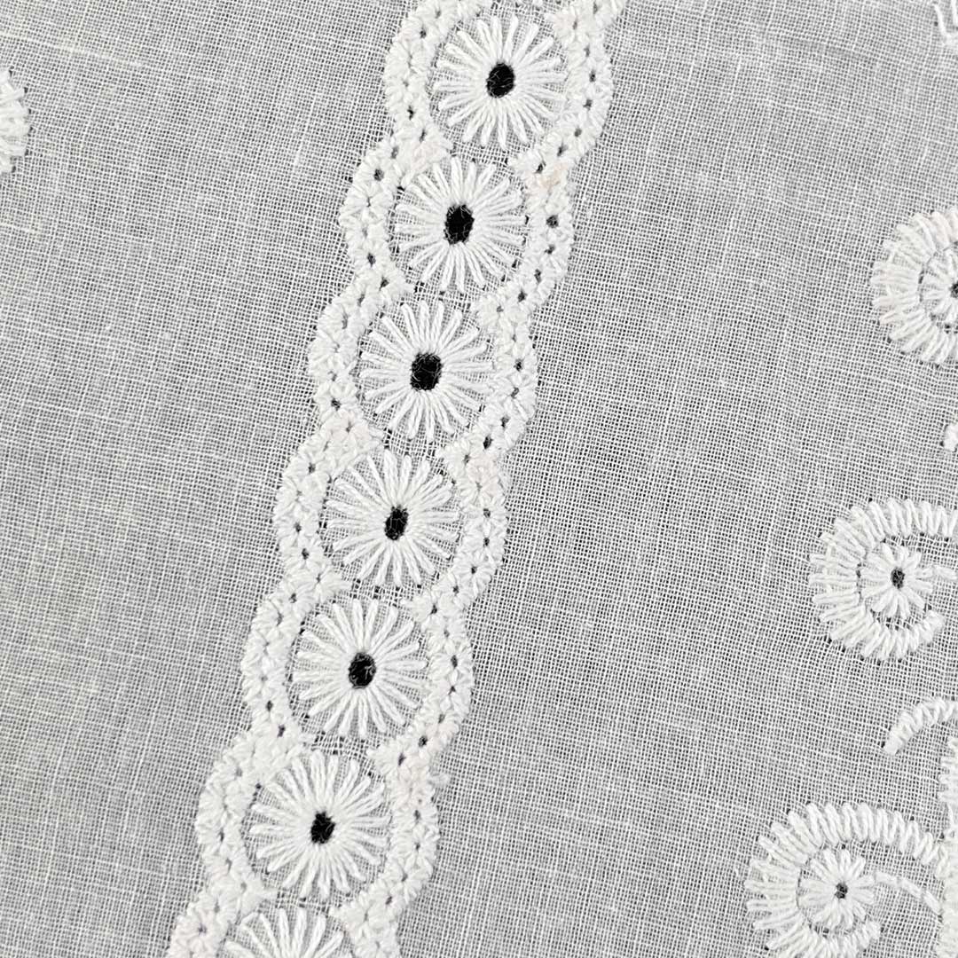 Lightweight and fluid, this fabric drapes with graceful ease, perfectly suited for crafting flowing dresses and stylish tops that merge ethical craftsmanship with modern femininity. The water-soluble technique produces intricate, lace-like patterns that provide a delicate tactile feel while promoting excellent airflow—key for comfortable wear in warmer conditions. Each embroidered motif enhances the fabric’s dimensional beauty, adding depth and sophistication without compromising its eco-conscious integrity. Easy to care for and machine washable, this fabric maintains the clarity of its embroidered details, vibrant color retention, and luxurious hand-feel over time.