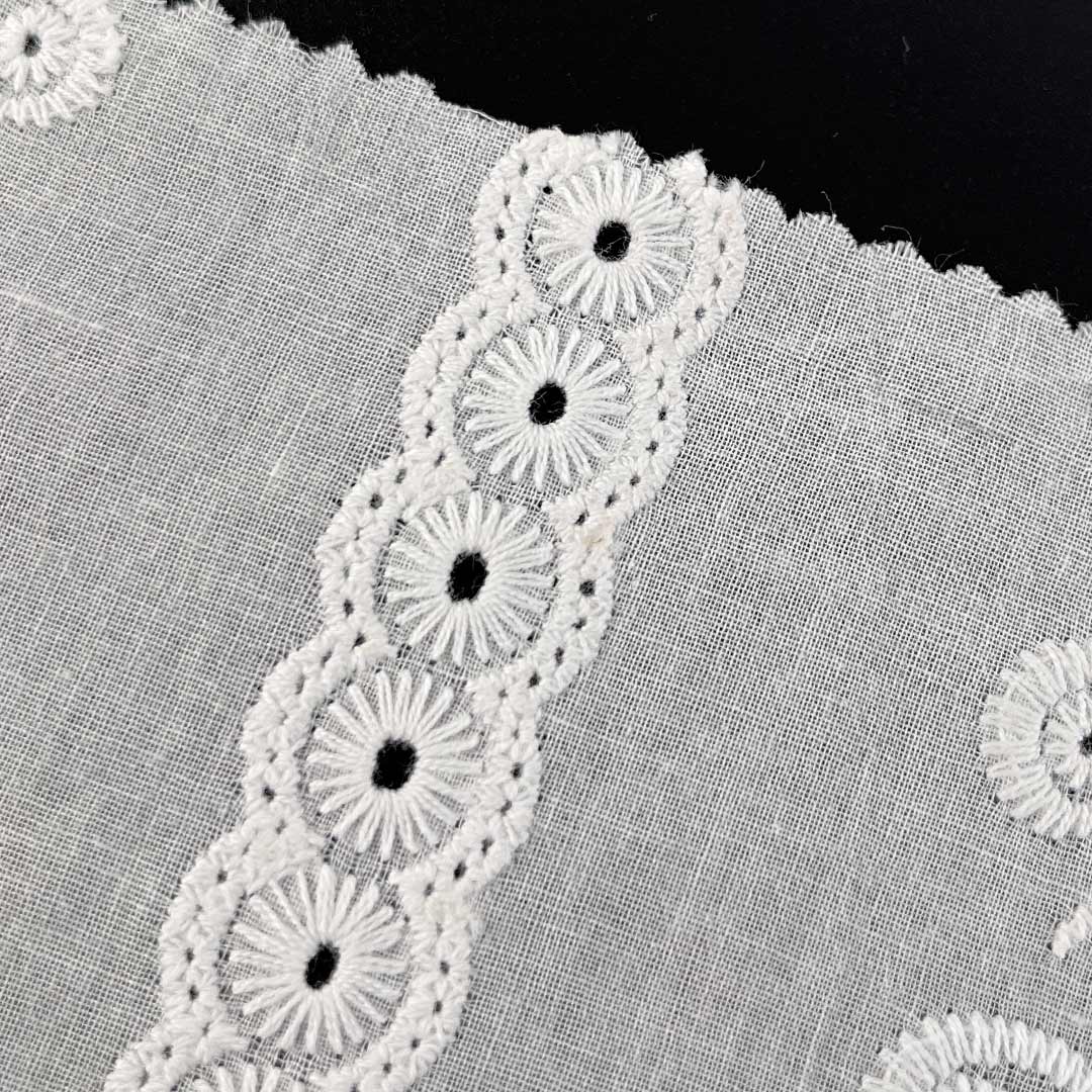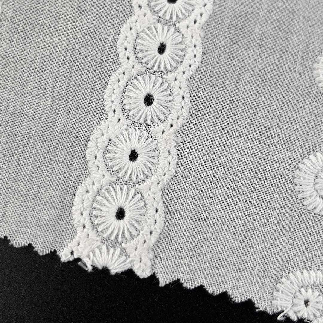 Crafted entirely from 100% natural cotton, this conscious eyelet fabric embodies the principles of eco-friendly water-soluble embroidery fabric, utilizing a sustainable production process that minimizes environmental impact while creating beautifully textured, breathable openwork designs. The pure cotton construction ensures exceptional softness, superior moisture-wicking ability, and gentle comfort against the skin, making it an ideal choice for eco-aware consumers and sensitive wearers.