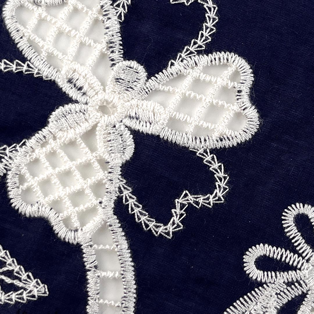 Crafted entirely from 100% premium cotton, this versatile eyelet fabric embraces the creative potential of custom water-soluble embroidery material, allowing for unique, tailor-made openwork patterns that deliver both exceptional breathability and a distinctive textured aesthetic. The pure cotton composition ensures unparalleled softness, superior moisture-wicking performance, and gentle comfort against the skin, making it an ideal choice for sensitive wearers and everyday elegance.