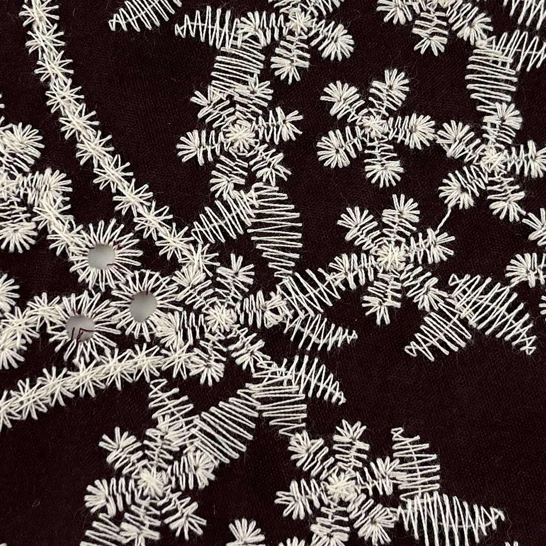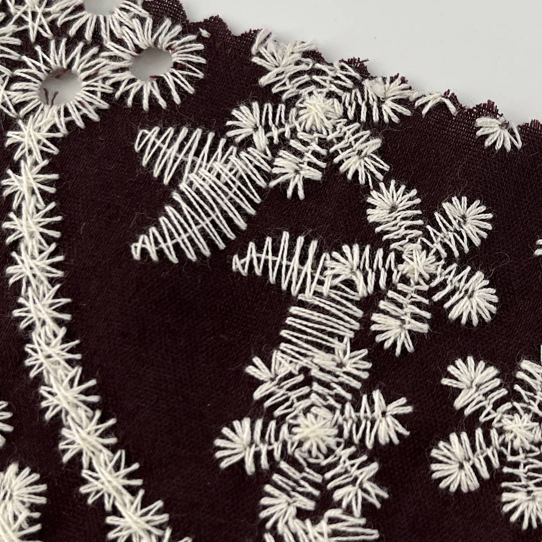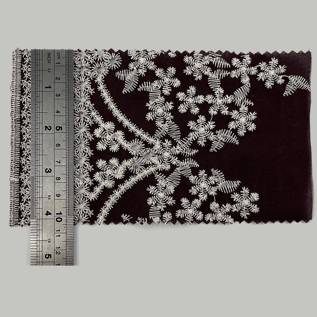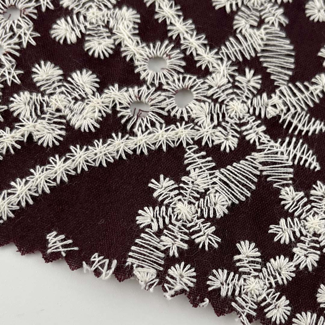 Lightweight and engineered for optimal breathability, this fabric drapes with a structured yet fluid elegance, perfectly suited for creating contemporary tops and flowing dresses that balance modern design with everyday versatility. The advanced water-soluble embroidery process yields detailed, lace-inspired motifs that enhance airflow while delivering a refined tactile experience—ideal for warm-weather apparel and elevated casual wear. Each embroidered element adds depth, dimension, and a sense of luxury to the fabric, transforming simple styles into statement pieces with artistic distinction. Easy to care for and machine washable, this fabric maintains the precision of its luxurious embroidery, vibrant color integrity, and sumptuous hand-feel over time.