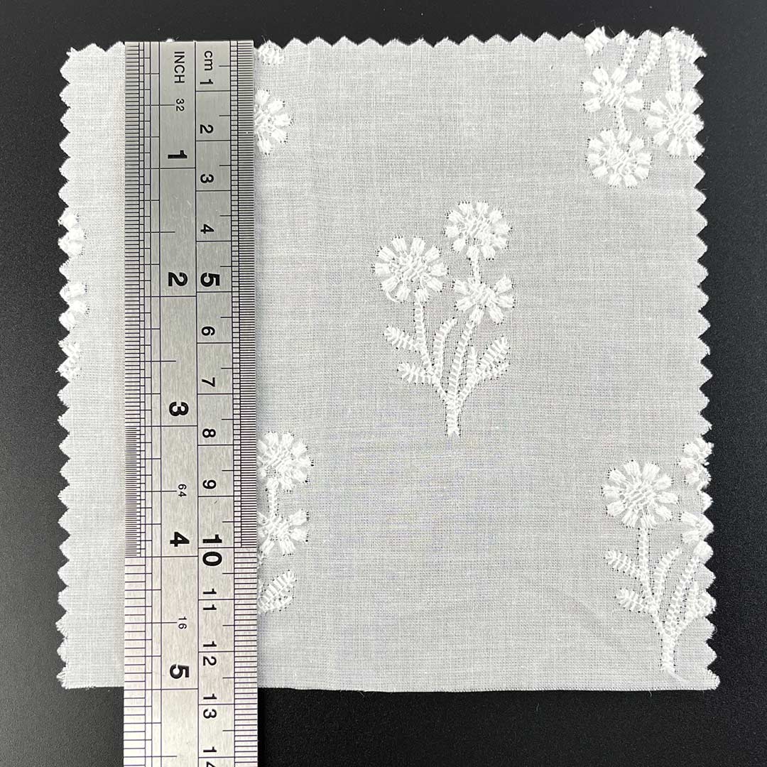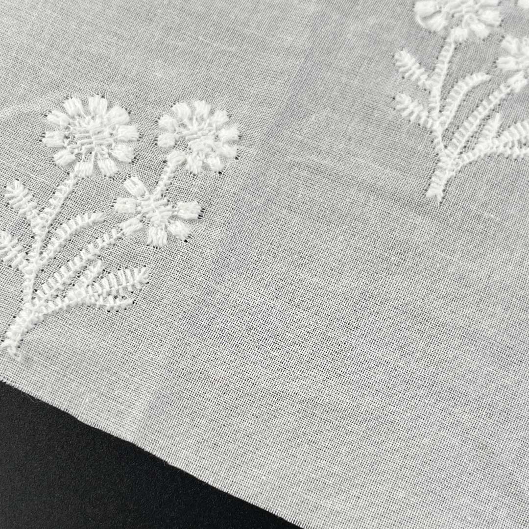 Lightweight and engineered for optimal breathability, this fabric drapes with a structured yet fluid elegance, perfectly suited for creating contemporary tops and chic skirts that balance modern design with everyday versatility. The advanced water-soluble embroidery process yields detailed, lace-inspired motifs that enhance airflow while delivering a refined tactile experience—ideal for warm-weather apparel and elevated casual wear. Each embroidered element adds depth, dimension, and a sense of luxury to the fabric, transforming simple styles into statement pieces with artistic distinction. Easy to care for and machine washable, this fabric maintains the precision of its luxurious embroidery, vibrant color integrity, and sumptuous hand-feel over time.
