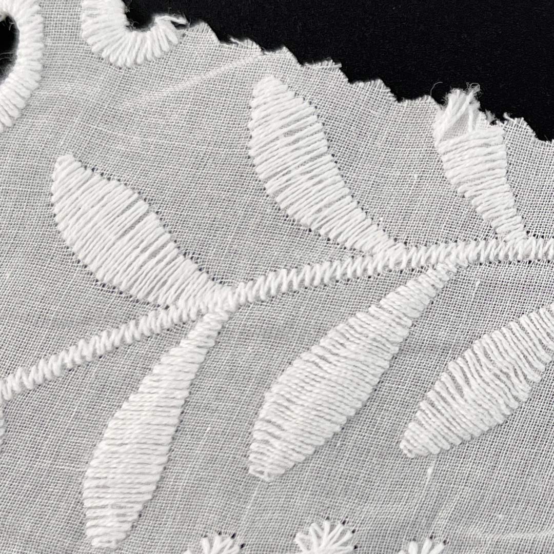 Lightweight and gracefully draping, this fabric is perfectly suited for creating stylish tops and chic skirts that balance modern design with timeless appeal. The advanced water-soluble embroidery technique produces intricately defined openwork patterns that enhance airflow while delivering a refined, tactile experience—ideal for warm-weather apparel and elevated casual wear. Each embroidered motif contributes to the fabric’s dimensional beauty and sophisticated texture, transforming simple garments into statement pieces with artistic clarity. Easy to care for and machine washable, this fabric maintains the crisp definition of its openwork embroidery, vibrant color fidelity, and luxurious hand-feel over time.
