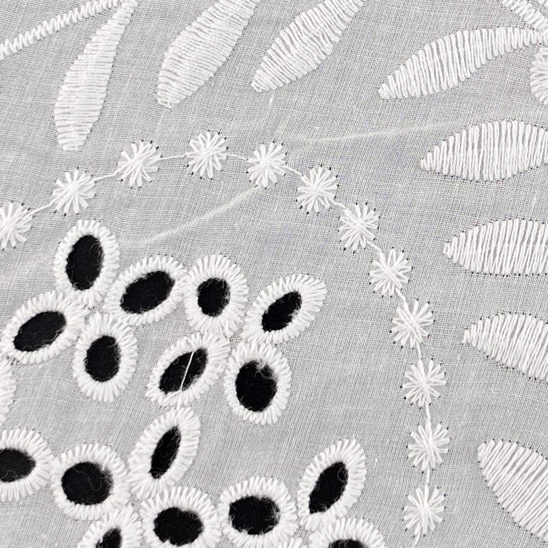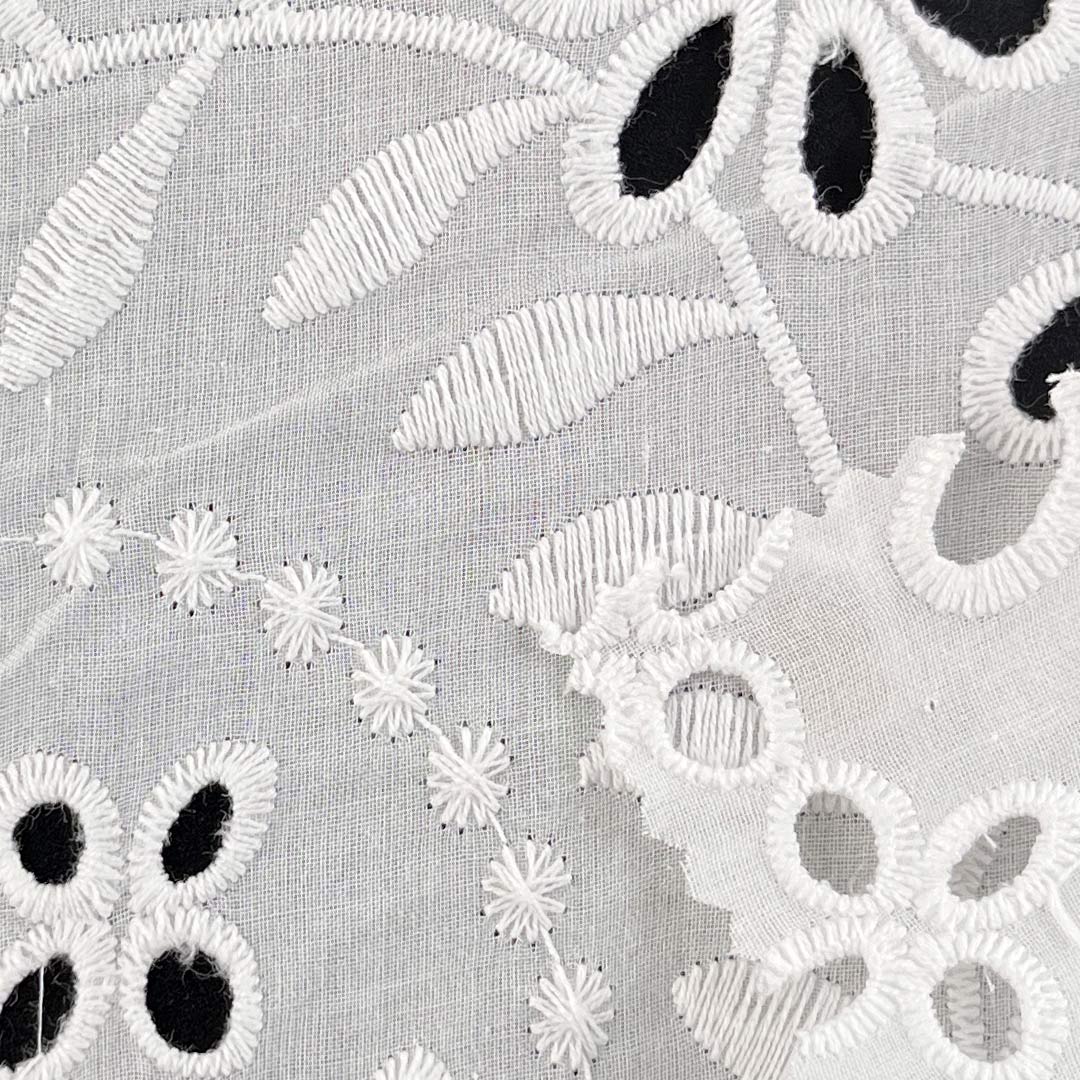 Whether designing fashionable tops for casual outings or chic skirts for dynamic occasions, this eyelet fabric provides a sustainable and conscious foundation for garments that celebrate artisanal embroidery, natural comfort, and enduring versatility.