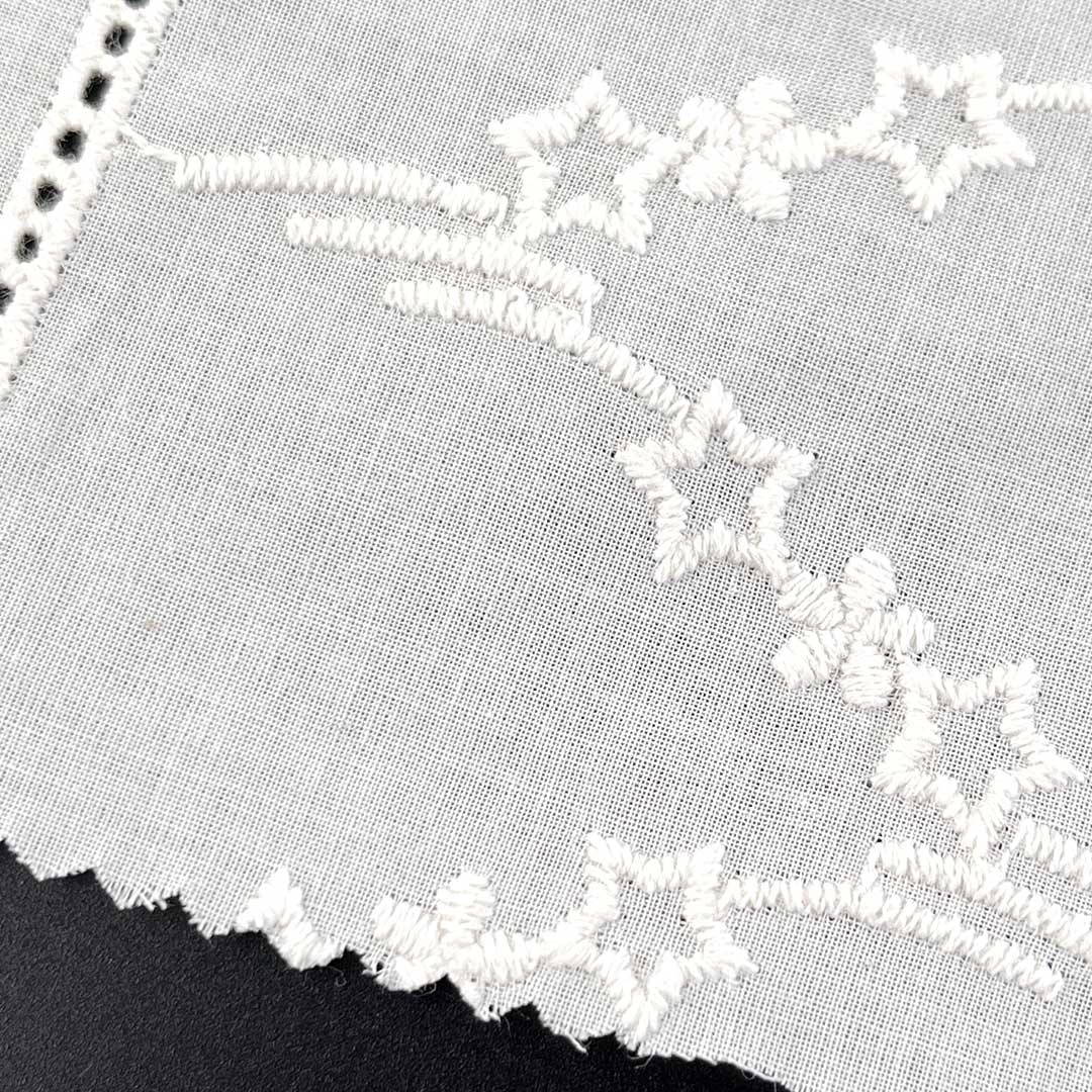 With its Soft Cotton Fabric hand feel, the material provides gentle contact against the skin, while the natural drape of high-quality cotton allows each garment to move gracefully with the wearer's form. The eyelet embroidery introduces a Delicate Embroidered Fabric elegance, making the fabric versatile enough for both casual daytime wear and refined evening attire. Whether used as Fashion Embroidered Cloth for modern tops, as Floral Embroidered Fabric for feminine dresses, or as Bridal Lace Fabric for special occasions, this Eco-Friendly Cotton Textile aligns seamlessly with sustainable fashion values thanks to its biodegradable, natural composition.