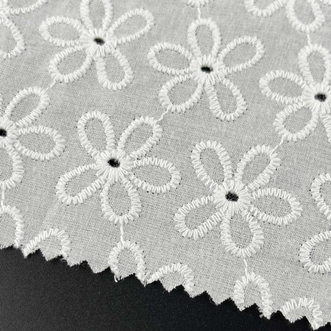 Boasting a luxuriously Soft Cotton Fabric hand feel and natural moisture-wicking properties, this material provides gentle, comfortable contact against the skin, while the natural drape of high-quality cotton allows each garment to move fluidly and elegantly with the wearer's form. The eyelet embroidery introduces a Delicate Embroidered Fabric sophistication, rendering the fabric adaptable for everything from casual daytime ensembles to refined evening attire. Whether utilized as Fashion Embroidered Cloth for contemporary Tops, as Floral Embroidered Fabric for feminine dresses, or as Bridal Lace Fabric for special occasions, this Eco-Friendly Cotton Textile seamlessly aligns with sustainable fashion values through its biodegradable, naturally sourced composition.