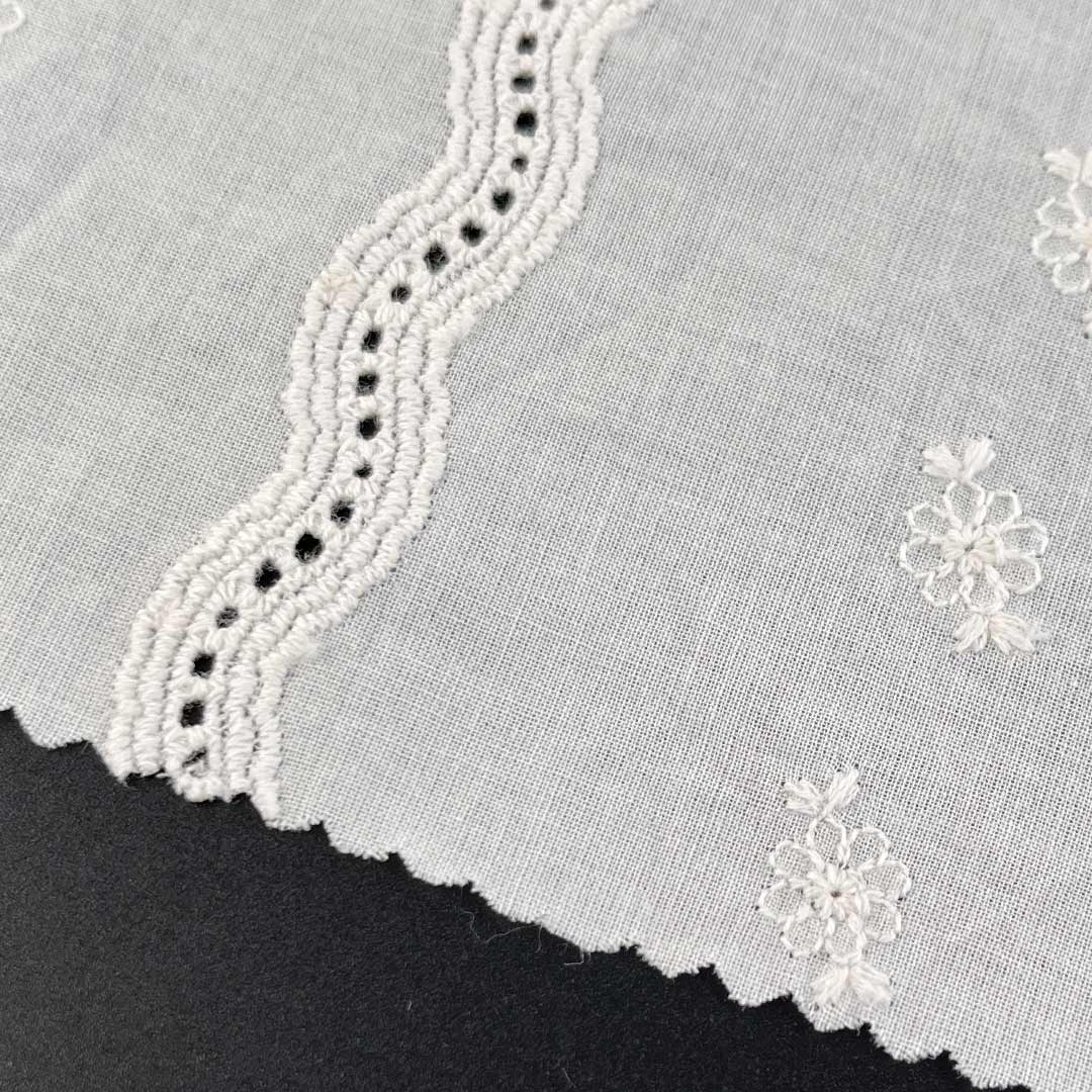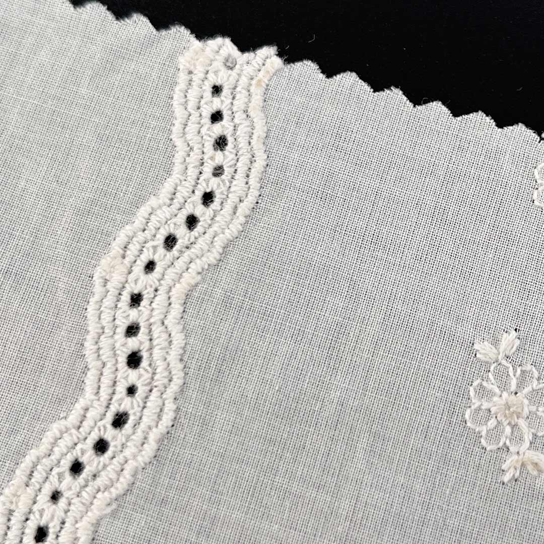 With its luxuriously Soft Cotton Fabric hand feel and natural moisture-wicking properties, this material provides gentle, comfortable contact against the skin, while the inherent drape of high-quality cotton allows each garment to move fluidly and elegantly with the wearer’s form. The eyelet embroidery introduces a Delicate Embroidered Fabric sophistication, making the fabric adaptable for everything from casual daytime outfits to refined evening ensembles. Whether used as Fashion Embroidered Cloth for contemporary Tops, as Floral Embroidered Fabric for feminine dresses, or as Bridal Lace Fabric for special occasions, this Eco-Friendly Cotton Textile seamlessly aligns with sustainable fashion values through its biodegradable, naturally sourced composition.