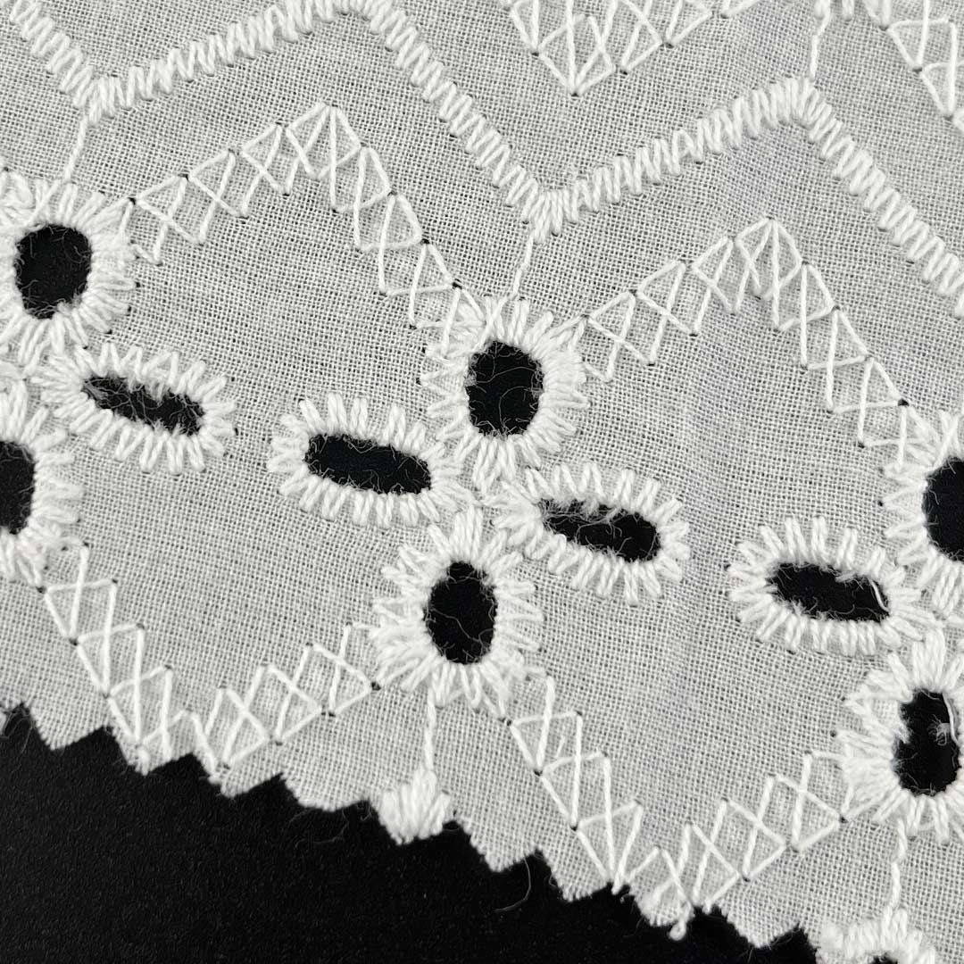 Boasting a luxuriously Soft Cotton Fabric hand feel and natural moisture-wicking properties, this material provides gentle, comfortable contact against the skin, while the natural drape of high-quality cotton allows each garment to move fluidly and elegantly with the wearer's form. The eyelet embroidery introduces a Delicate Embroidered Fabric sophistication, rendering the fabric adaptable for everything from casual daytime ensembles to refined evening attire. Whether utilized as Fashion Embroidered Cloth for contemporary Tops, as Floral Embroidered Fabric for feminine dresses, or as Bridal Lace Fabric for special occasions, this Eco-Friendly Cotton Textile seamlessly aligns with sustainable fashion values through its biodegradable, naturally sourced composition.