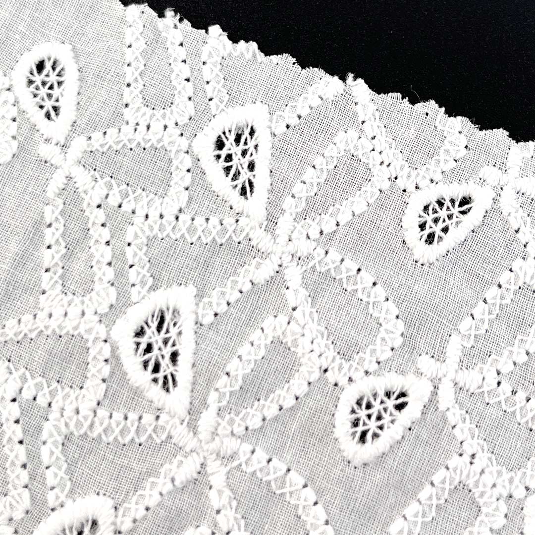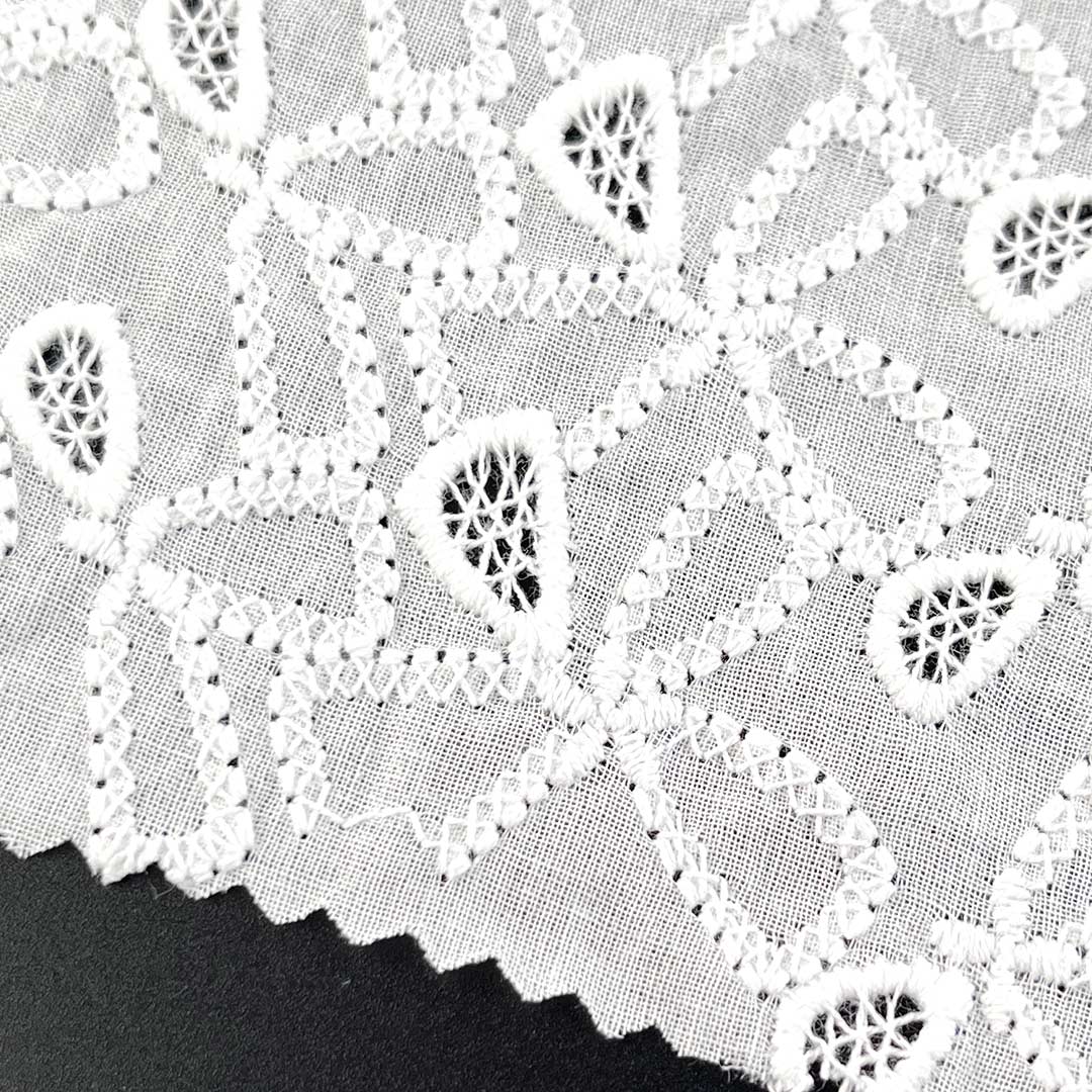 With its Soft Cotton Fabric hand feel, the material provides gentle contact against the skin, while the natural drape of high-quality cotton allows each garment to move gracefully with the wearer's form. The eyelet embroidery introduces a Delicate Embroidered Fabric elegance, making the fabric versatile enough for both casual daytime wear and refined evening attire. Whether used as Fashion Embroidered Cloth for modern Tops, as Floral Embroidered Fabric for feminine dresses, or as Bridal Lace Fabric for special occasions, this Eco-Friendly Cotton Textile aligns seamlessly with sustainable fashion values thanks to its biodegradable, natural composition.