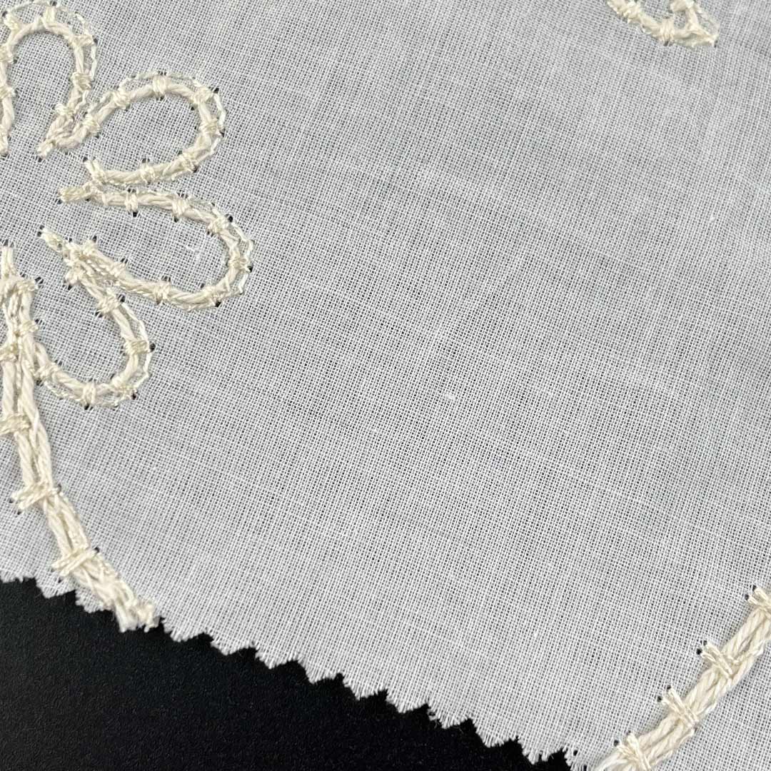 Lightweight and engineered for optimal breathability, this fabric drapes with a structured yet fluid elegance, perfectly suited for creating chic skirts and flowing dresses that balance modern design with everyday versatility. The advanced water-soluble embroidery process yields detailed, lace-inspired motifs that enhance airflow while delivering a refined tactile experience—ideal for warm-weather apparel and elevated casual wear. Each embroidered element adds depth, dimension, and a sense of luxury to the fabric, transforming simple styles into statement pieces with artistic distinction. Easy to care for and machine washable, this fabric maintains the precision of its luxurious embroidery, vibrant color integrity, and sumptuous hand-feel over time.