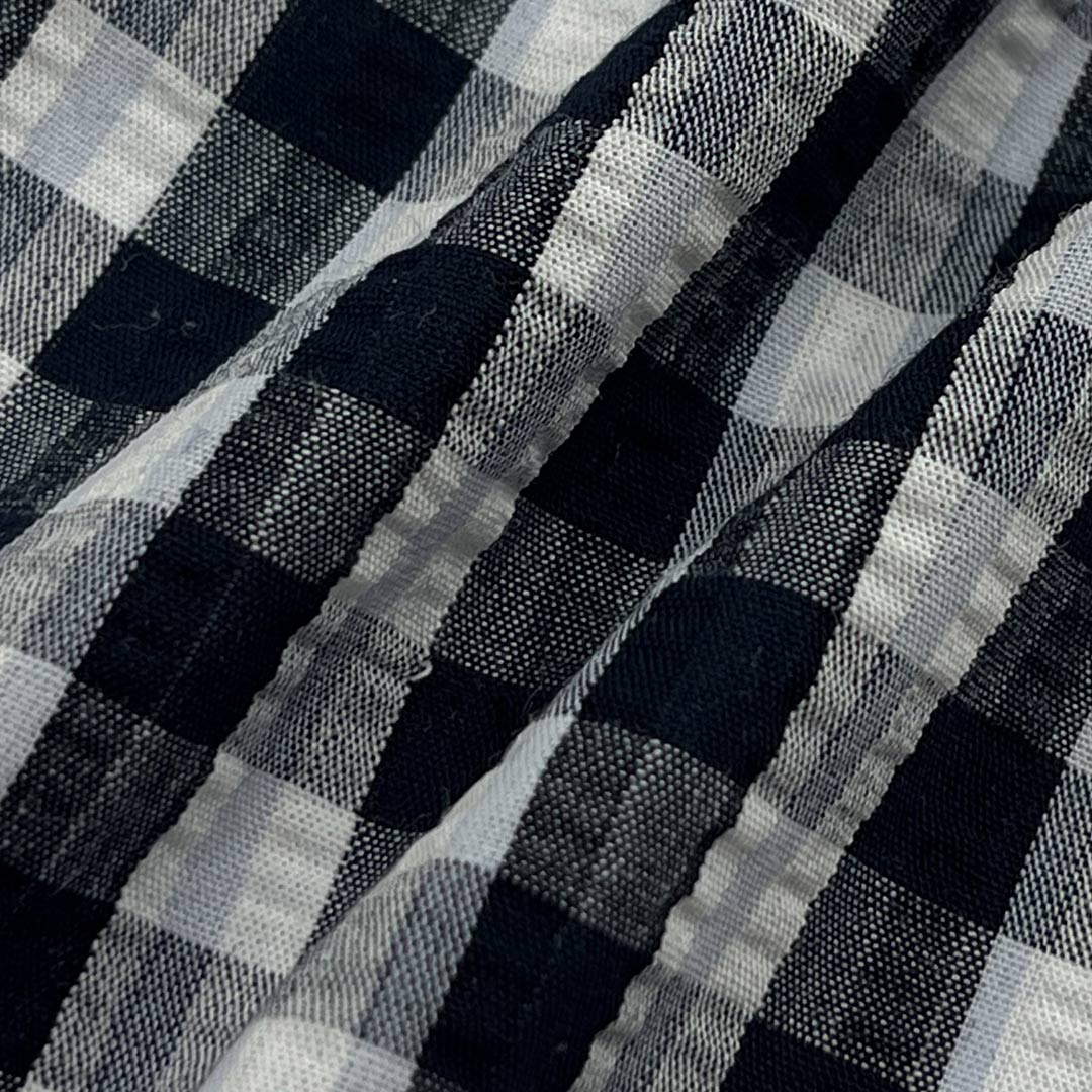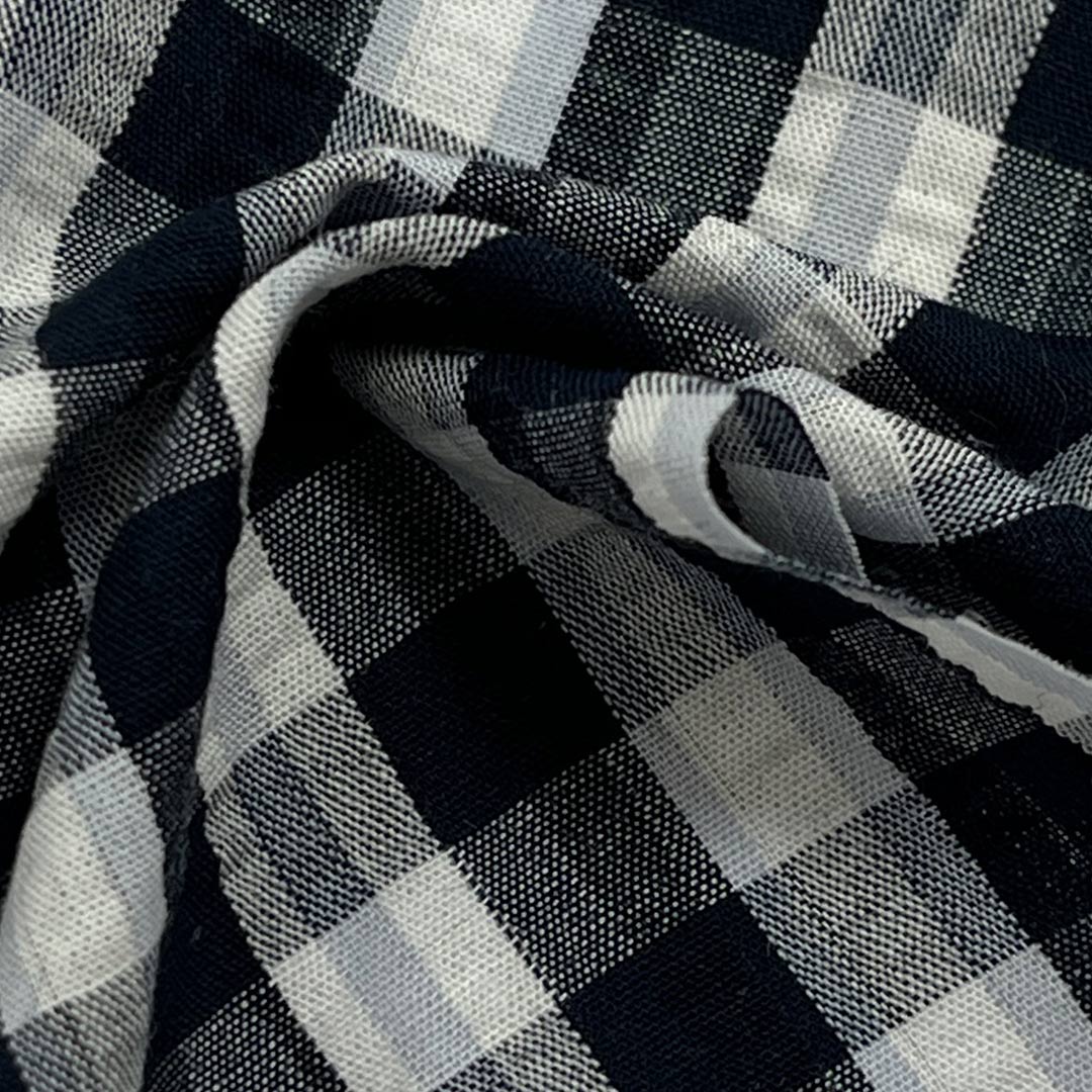 Weighing just 100gsm, this lightweight fabric is perfect for flowing dresses that move gracefully and tailored pants that maintain a neat silhouette. The gingham pattern adds a touch of vintage charm and visual interest, while the smooth texture provides a comfortable wearing experience free from irritation. Easy to care for and machine washable, this fabric retains its vibrant colors, sharp pattern definition, and soft drape over time.