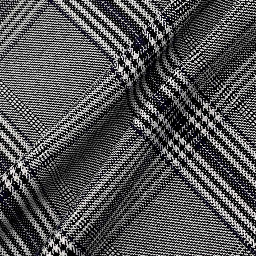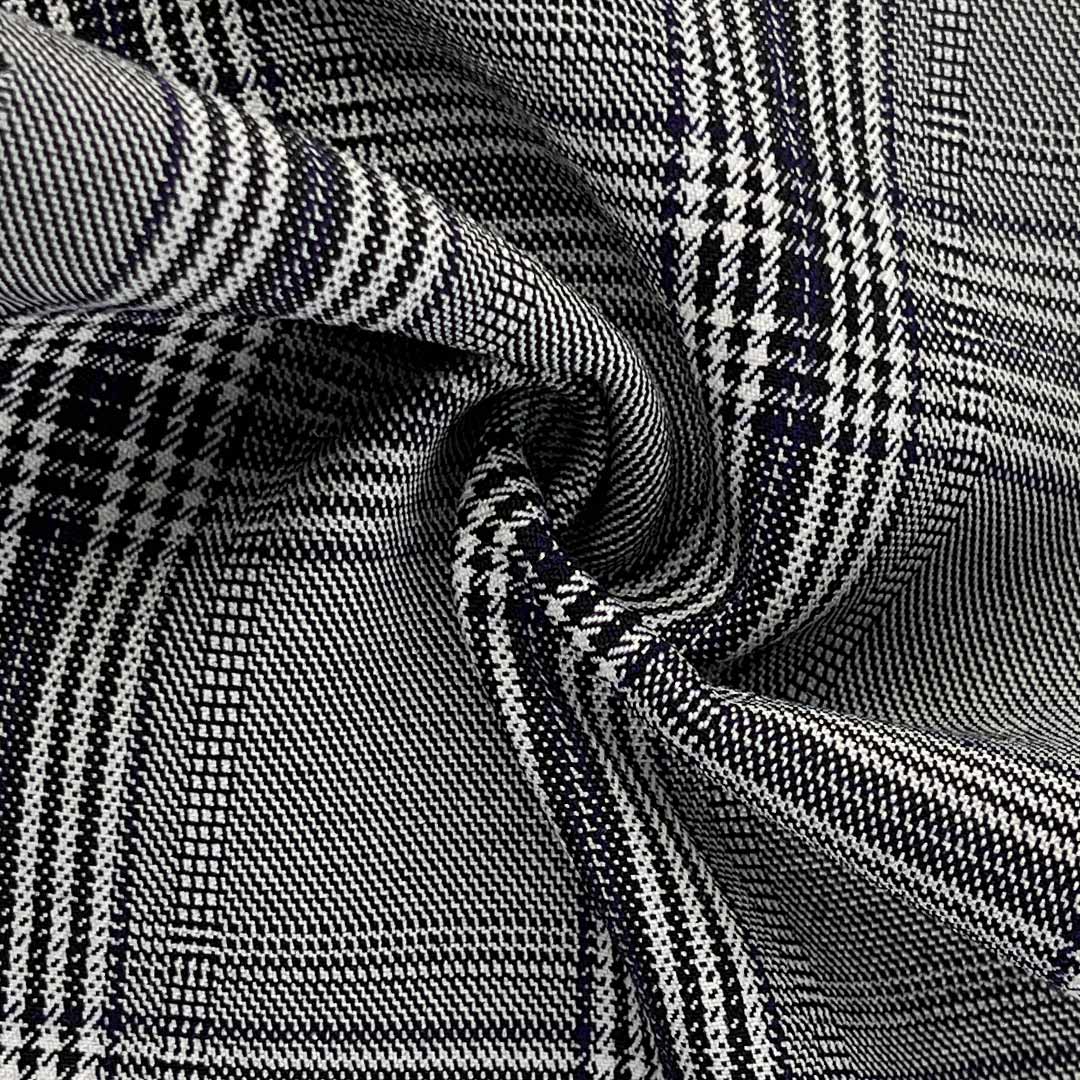 The high polyester content ensures excellent shape retention and long-lasting performance, keeping garments looking polished through extended wear. Viscose contributes subtle softness and breathability, enhancing the fabric's overall comfort. With 4% spandex, the fabric offers optimal flexibility for natural movement, making it ideal for all-day professional wear. The exceptionally soft hand feel distinguishes this material from traditional suiting fabrics, providing a luxurious tactile experience that remains comfortable against the skin.