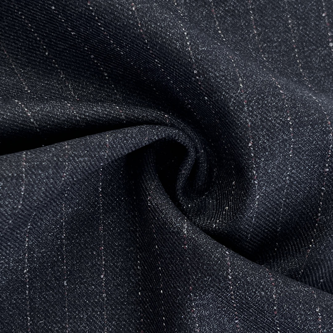 Weighing 375g/m (7.4oz), this substantial fabric combines 68% polyester, 30% viscose, and 2% spandex to create a premium suiting material with remarkably soft hand feel and enhanced flexibility. Designed for tailored suits and blazers, this heavyweight blend delivers professional elegance through its refined surface while ensuring luxurious comfort via its strategic composition. Polyester provides reliable durability and shape retention, maintaining authoritative silhouettes through extended professional wear. The significant viscose content (30%) contributes outstanding softness and breathability, creating a sumptuous tactile experience that remains comfortable throughout extended use.